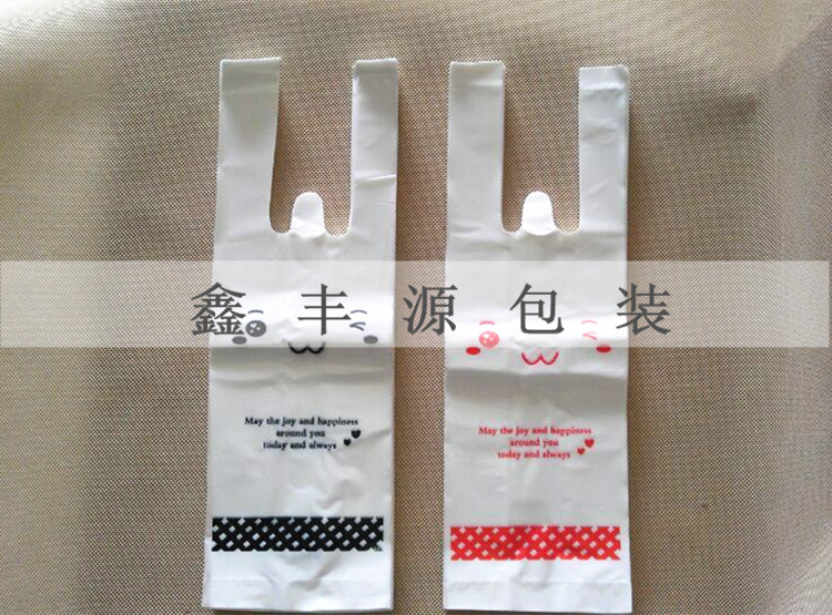 笑脸饮料咖啡马夹袋加厚奶茶袋子豆浆外卖塑料袋打包袋子定做印刷