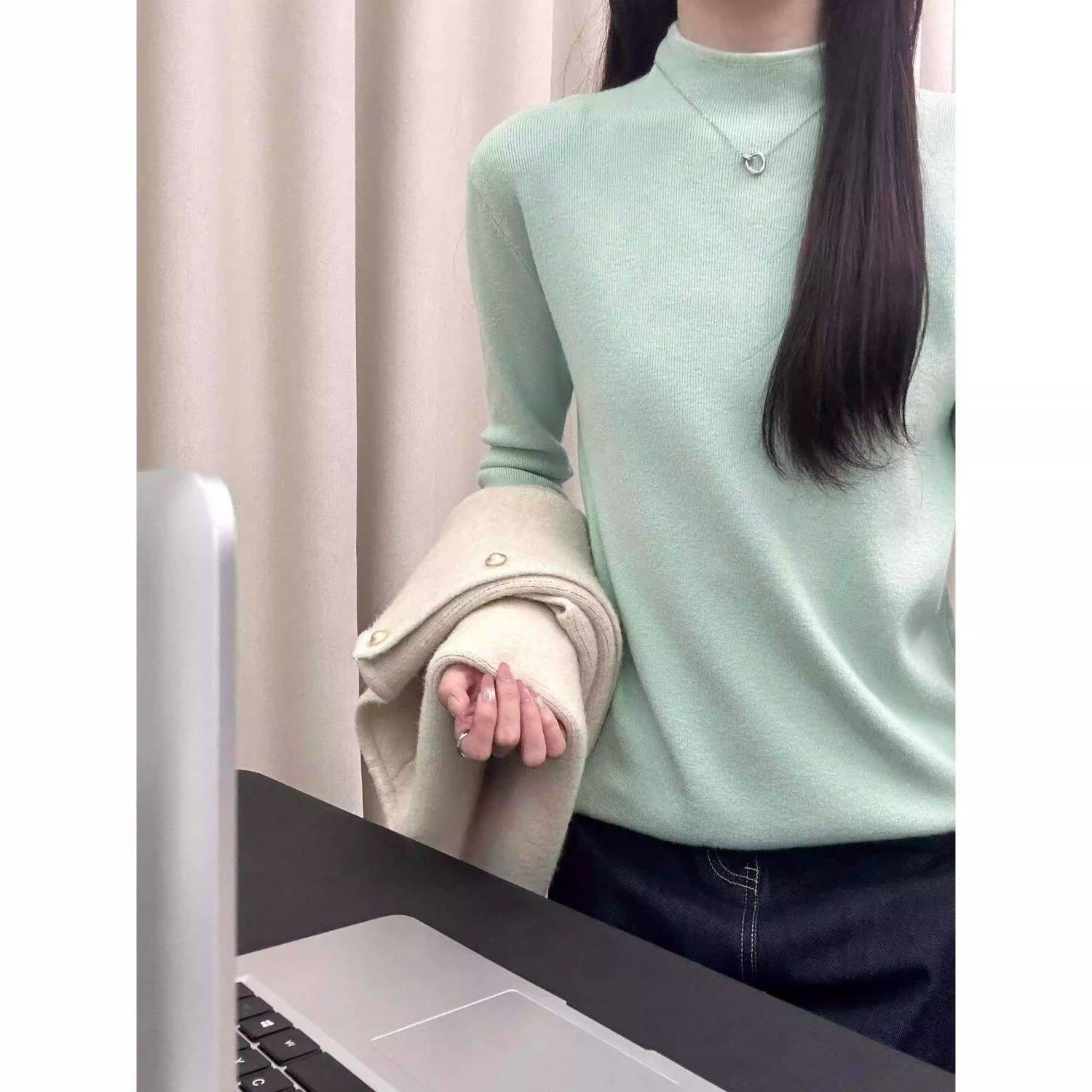 少女感温柔气质内搭上衣女秋冬半高领基础保暖针织打底衫长袖毛衣