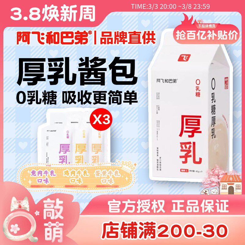 阿飞和巴弟猫零食厚乳奶包40g猫咪全价主食猫条成猫幼猫通用湿粮