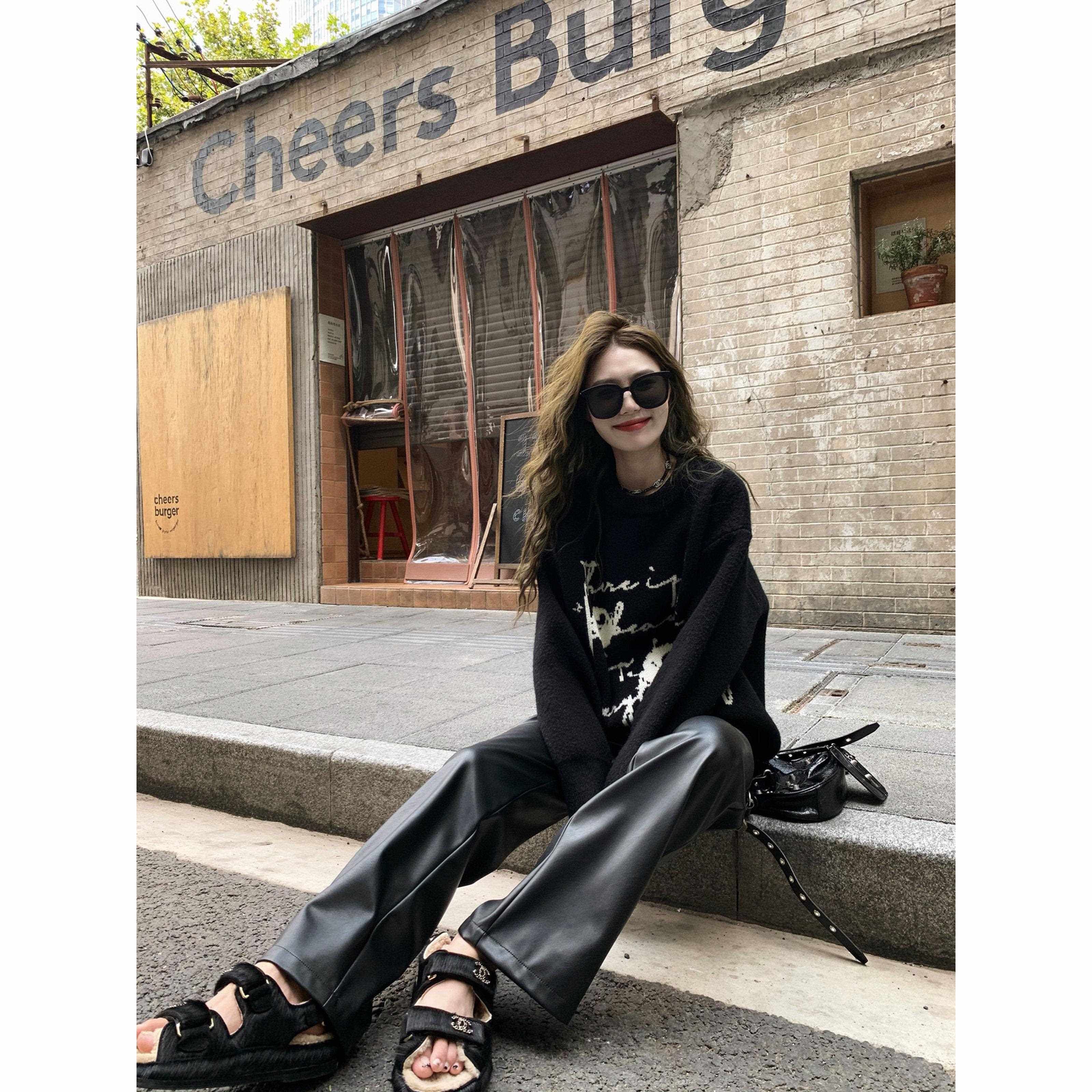 小君君布兰妮 好版型女团皮裤女秋新款显显超高模瘦裤冬黑色9.20-