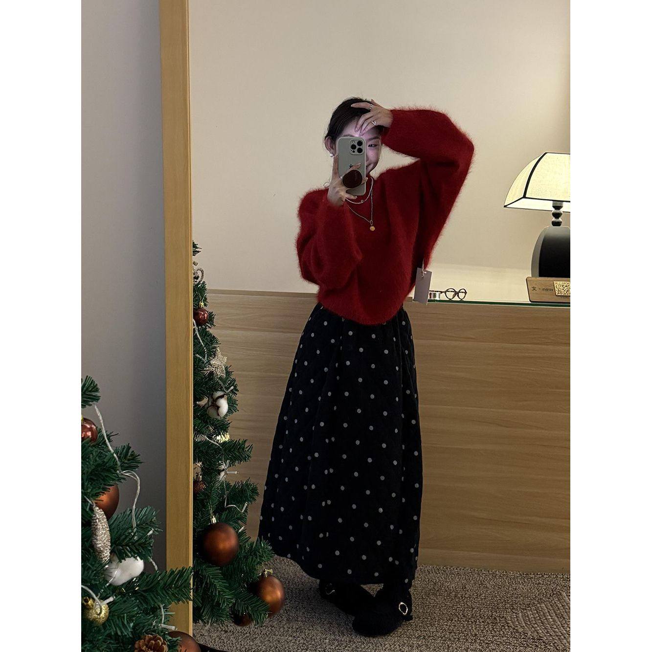 韩系气质新年高级感小众两件套女冬季新款短款上衣+半裙慵懒套装