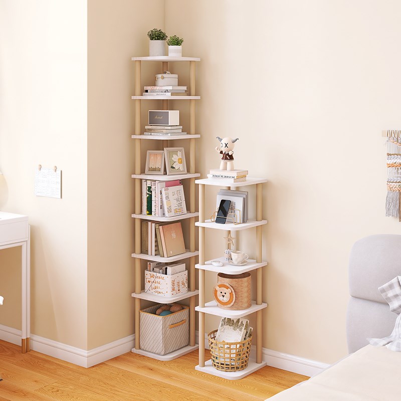 卧室转角置物架角落多层收纳架客厅落地小型书架拐角墙角实木架子