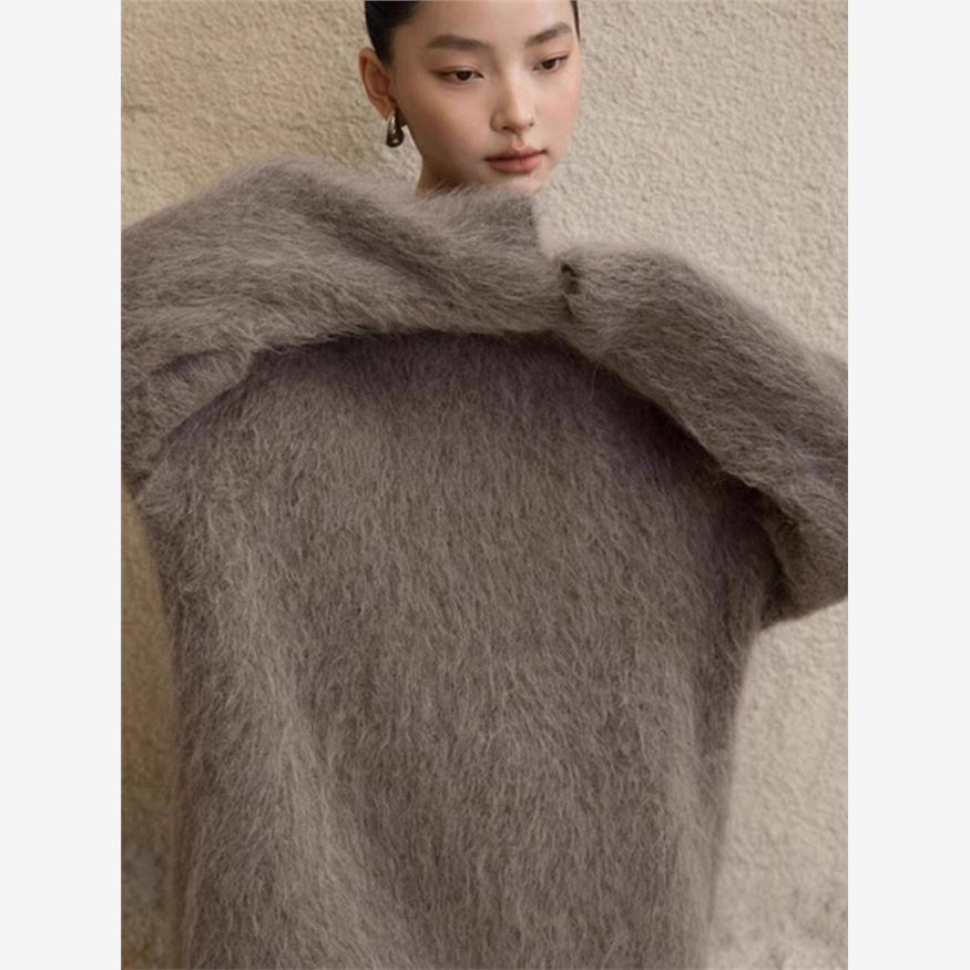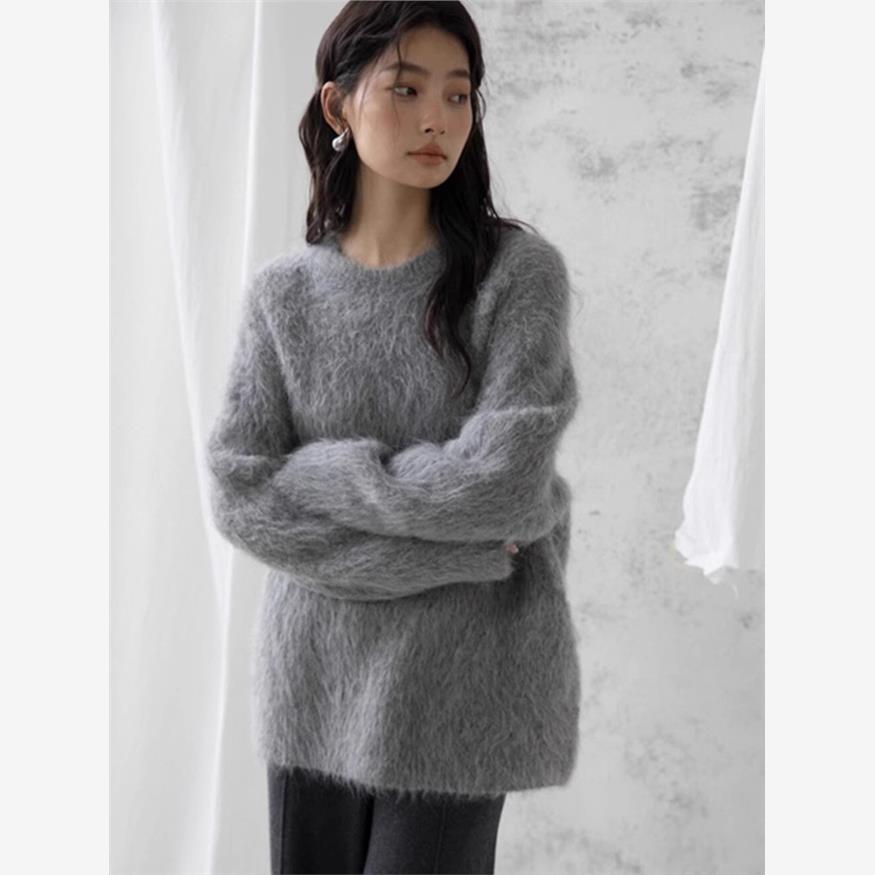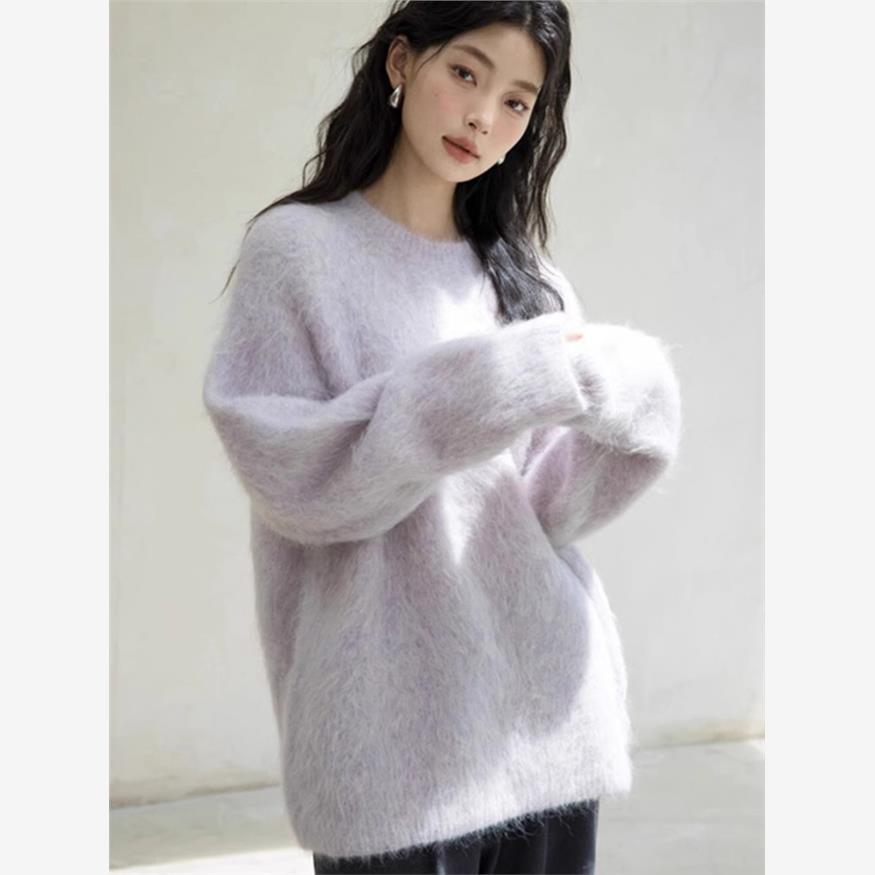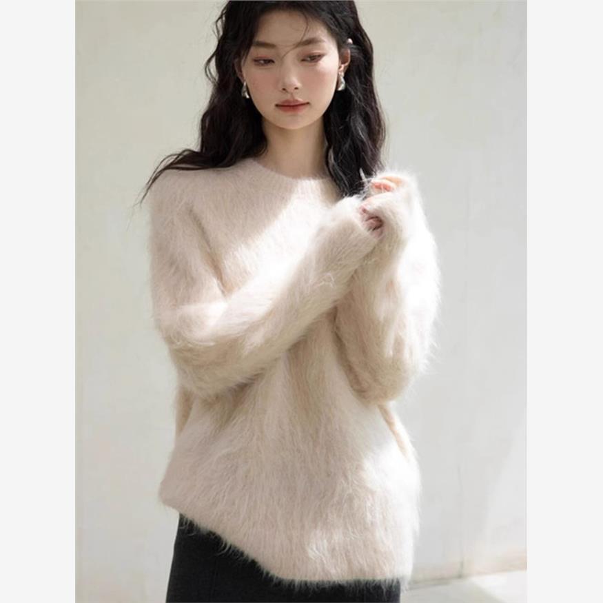 首页> 女装> 彷水貂绒白色套头毛衣女秋冬加厚新款慵懒软糯圆领长袖针织衫上衣