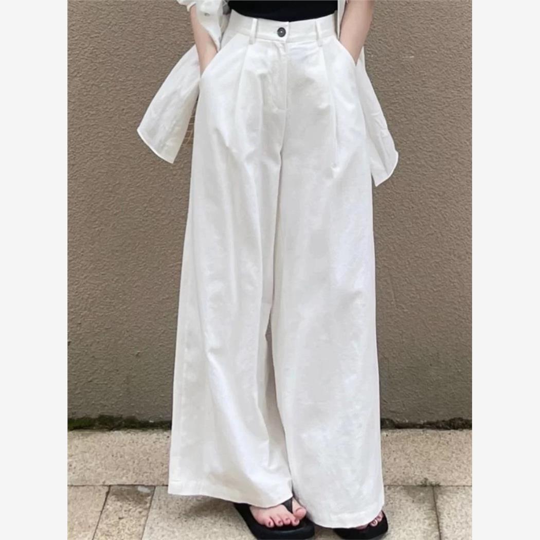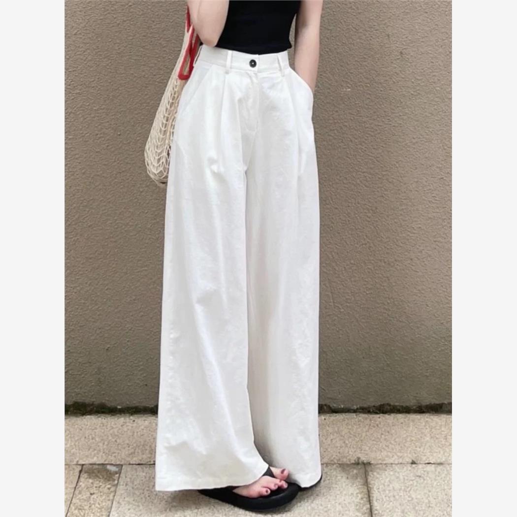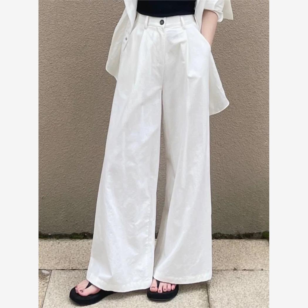采购产品夏季女士白色西装阔腿裤,高端,垂坠,梨形直筒裤,宽松