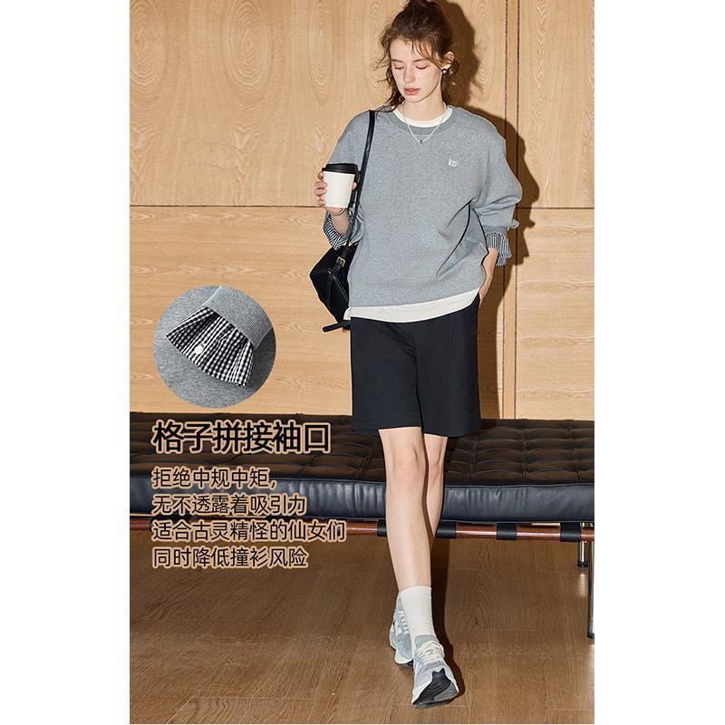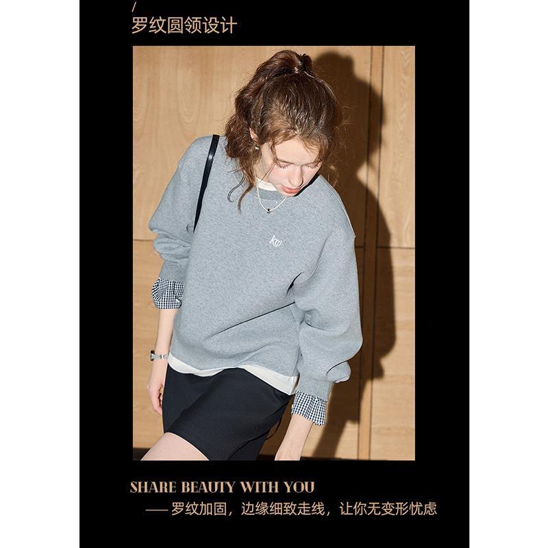 设计感小众拼接衬衫袖口卫衣女款2025年早春新款套头上衣