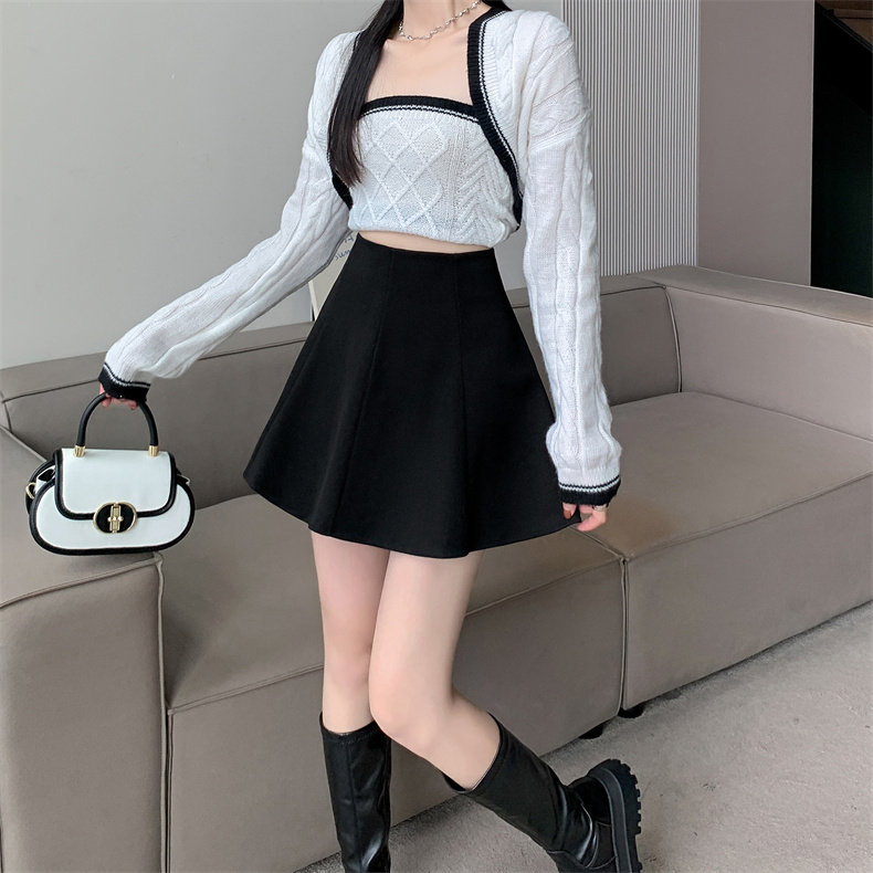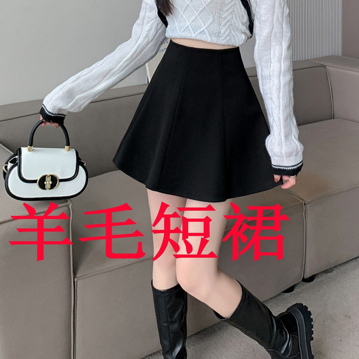 秋冬短裙女包臀遮胯臀A字伞裙100%纯羊毛短裙时尚半身蓬蓬裙松紧