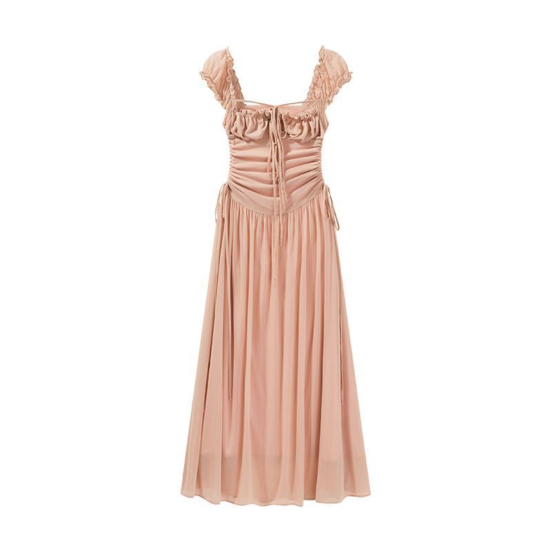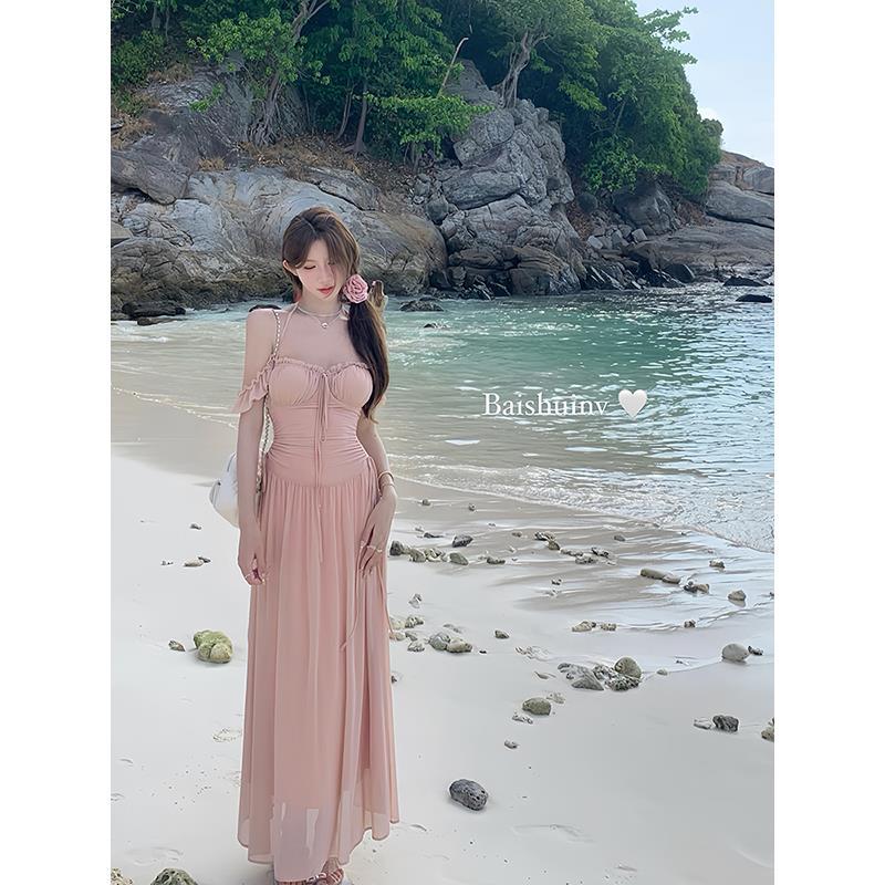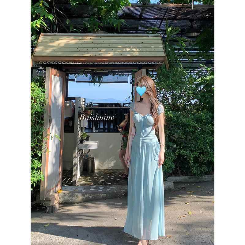 白水女【层叠浪漫~】网纱海边度假连衣裙女夏季海岛方领气质裙子