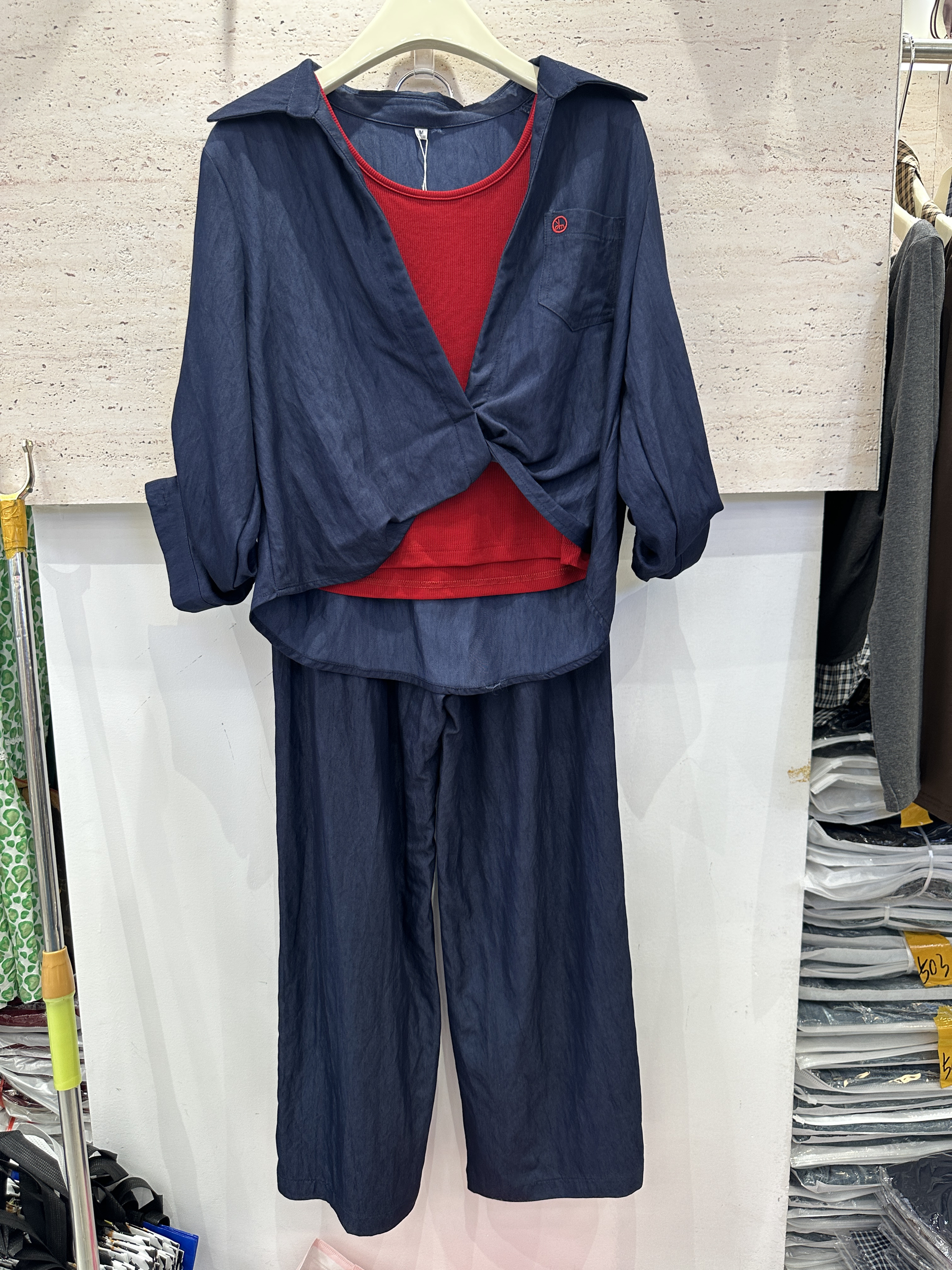 鑫天心2597秋新款时尚三件套装女2025减龄显瘦衬衫领+高腰阔腿裤