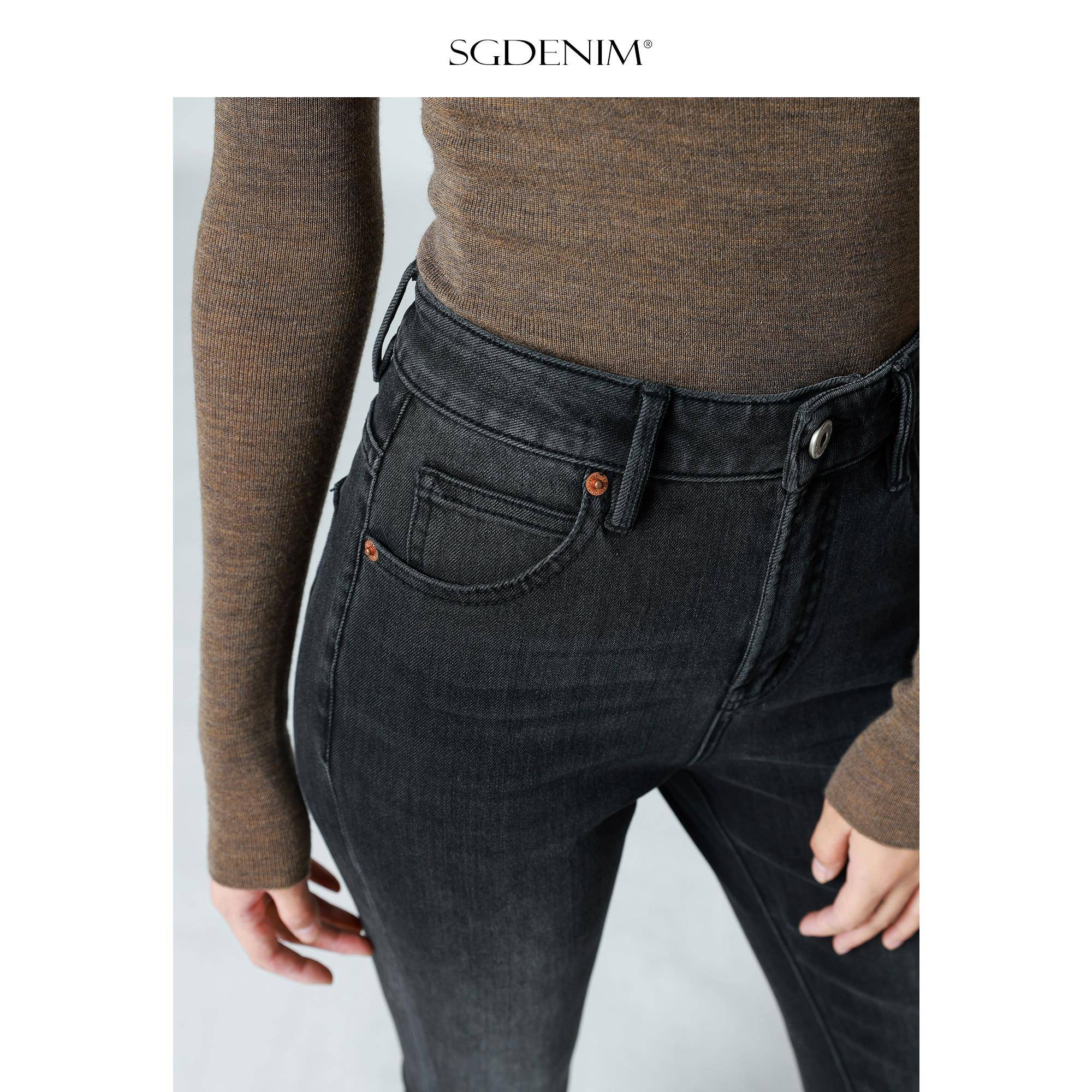 超模裤/巨显瘦黑灰色高腰微喇叭牛仔裤女弹力紧身提臀25春款