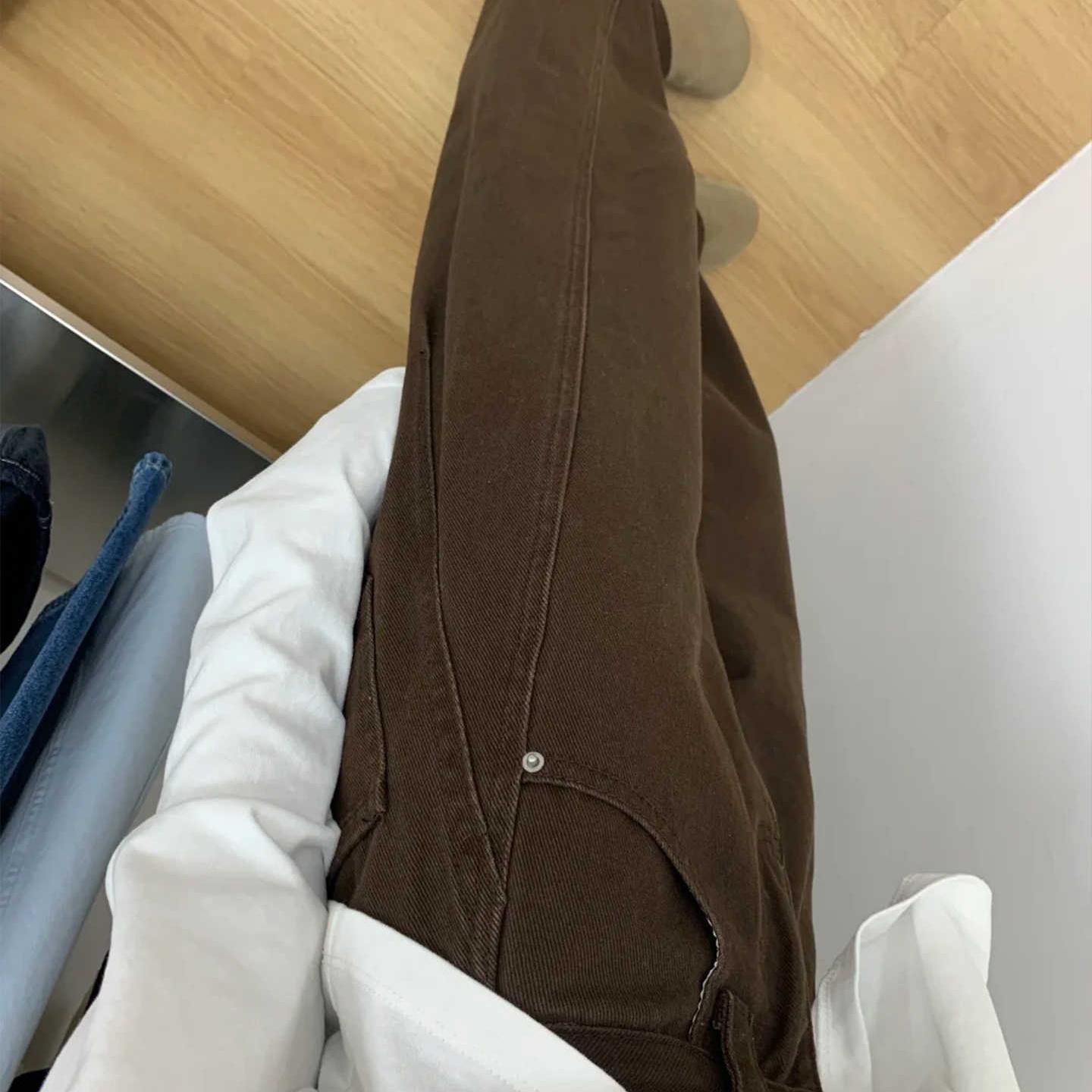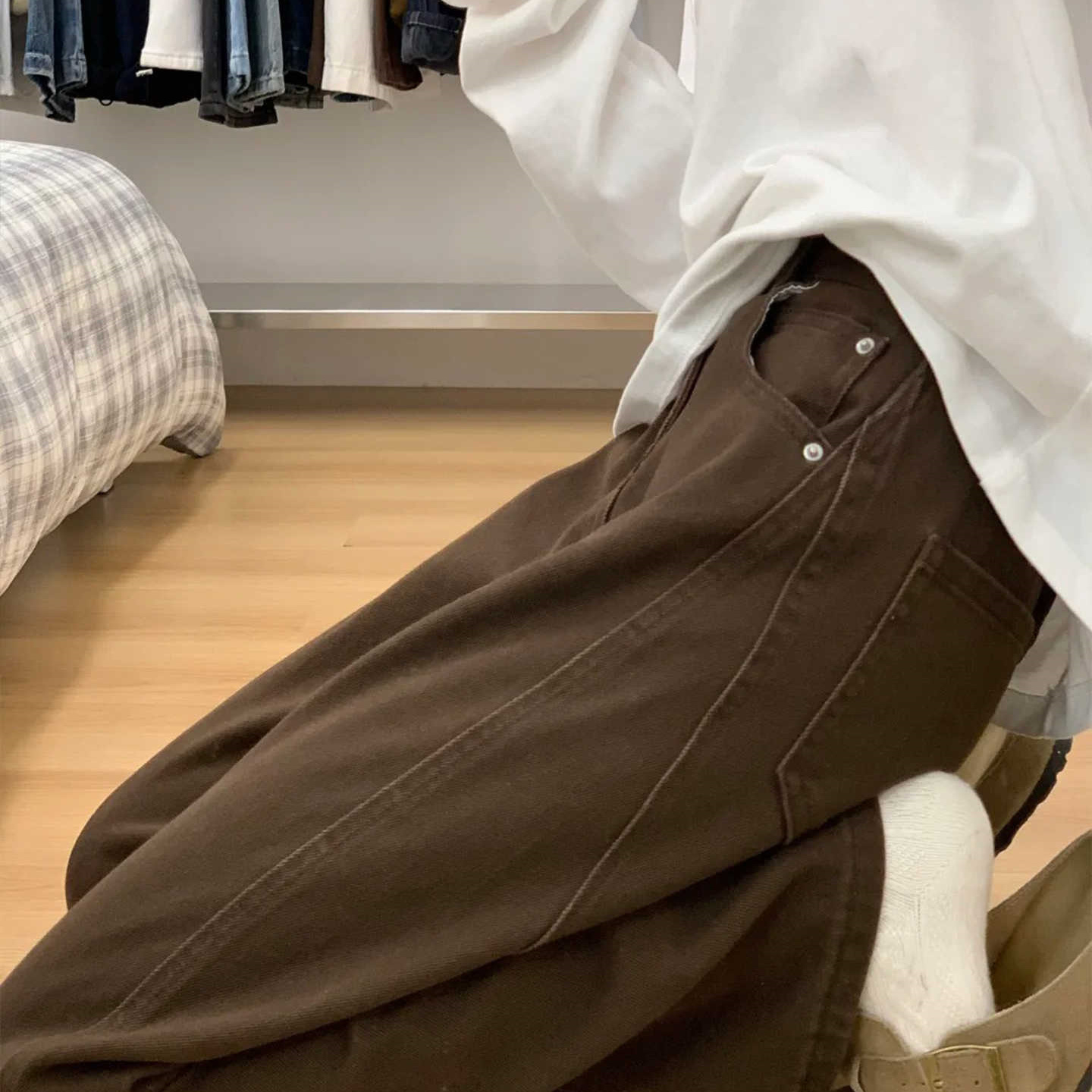 设计感咖色阔腿牛仔裤女秋季新款美式高腰显瘦垂感拖地阔腿长裤子