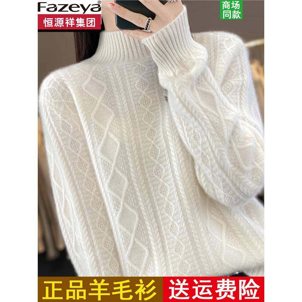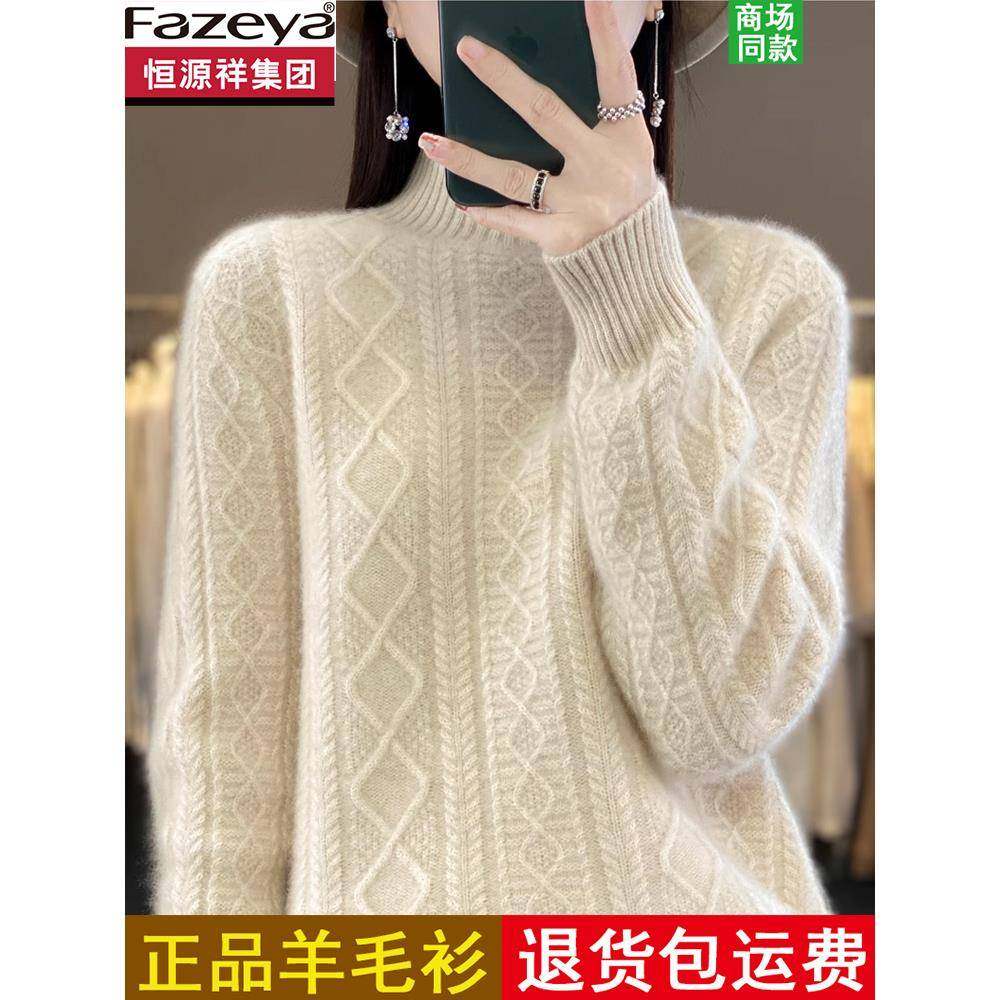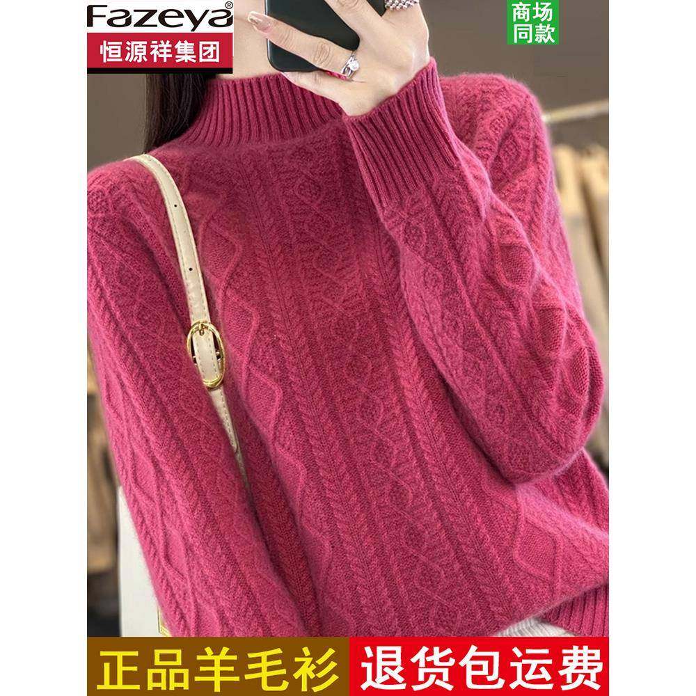 恒源祥彩羊绒衫女秋冬半高领套头宽松纯色毛衣加厚羊毛衫打底衫女