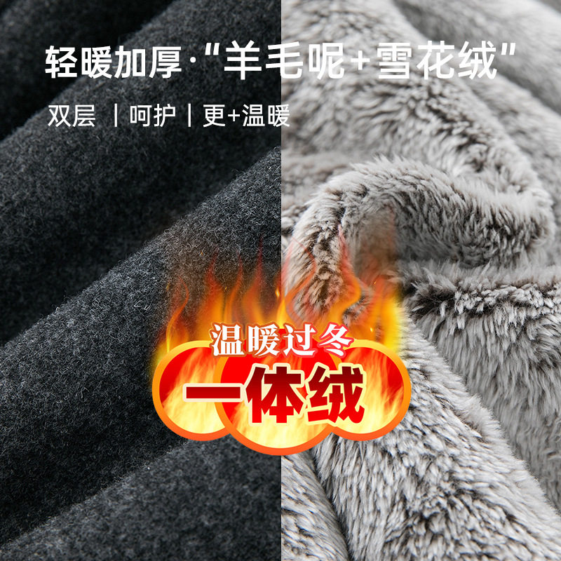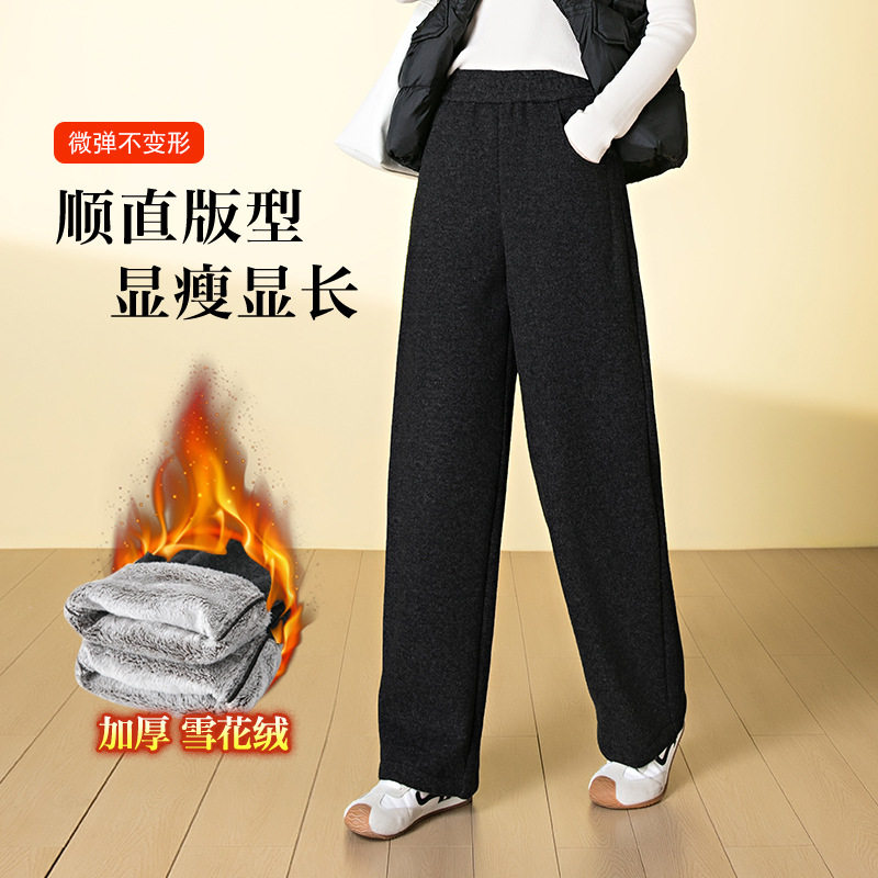 株洲和顺圣女裤雪花绒弯刀阔腿裤加绒加厚松紧腰软糯直筒灰色长裤