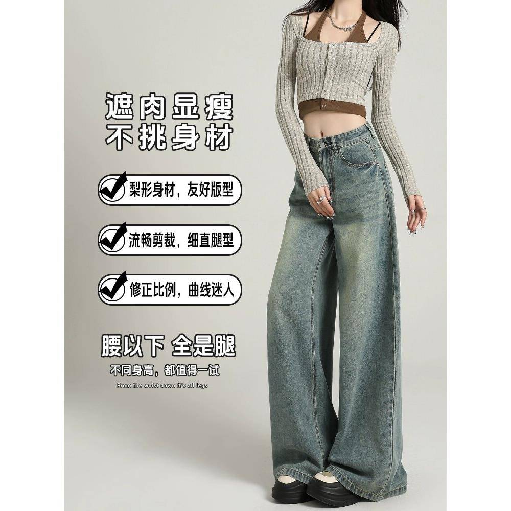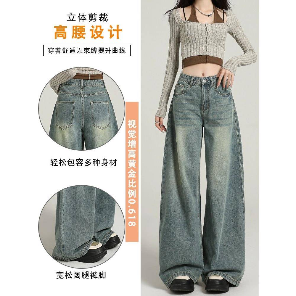 复古a版阔腿牛仔裤女2025秋季新款梨形宽松bf慵懒风直筒大脚裤子