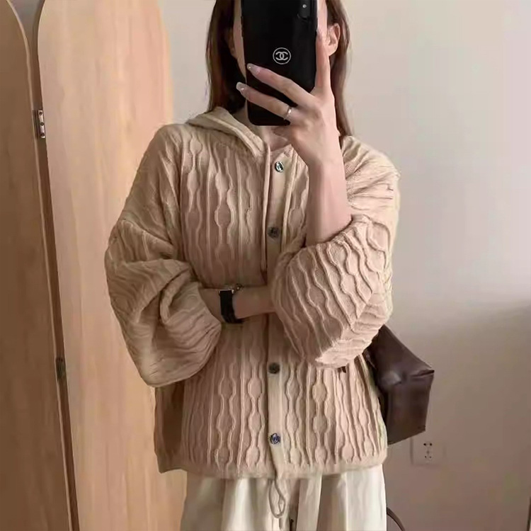 复古洋气深灰色针织连帽开衫女秋季新款时尚气质减龄毛衣外套上衣