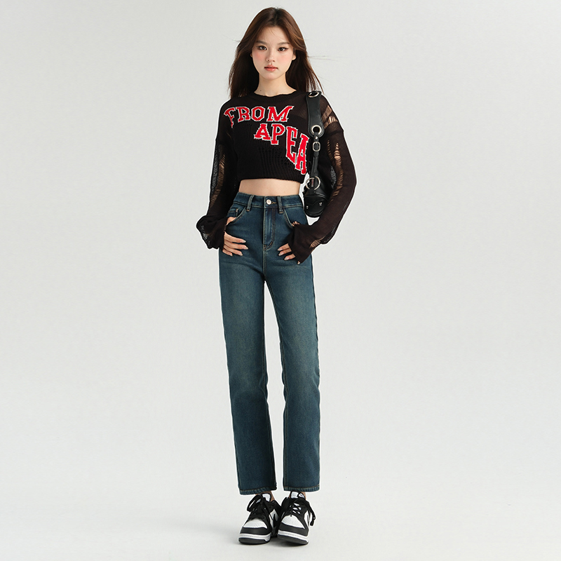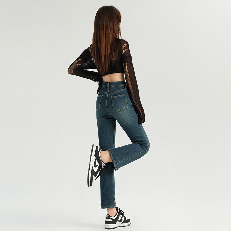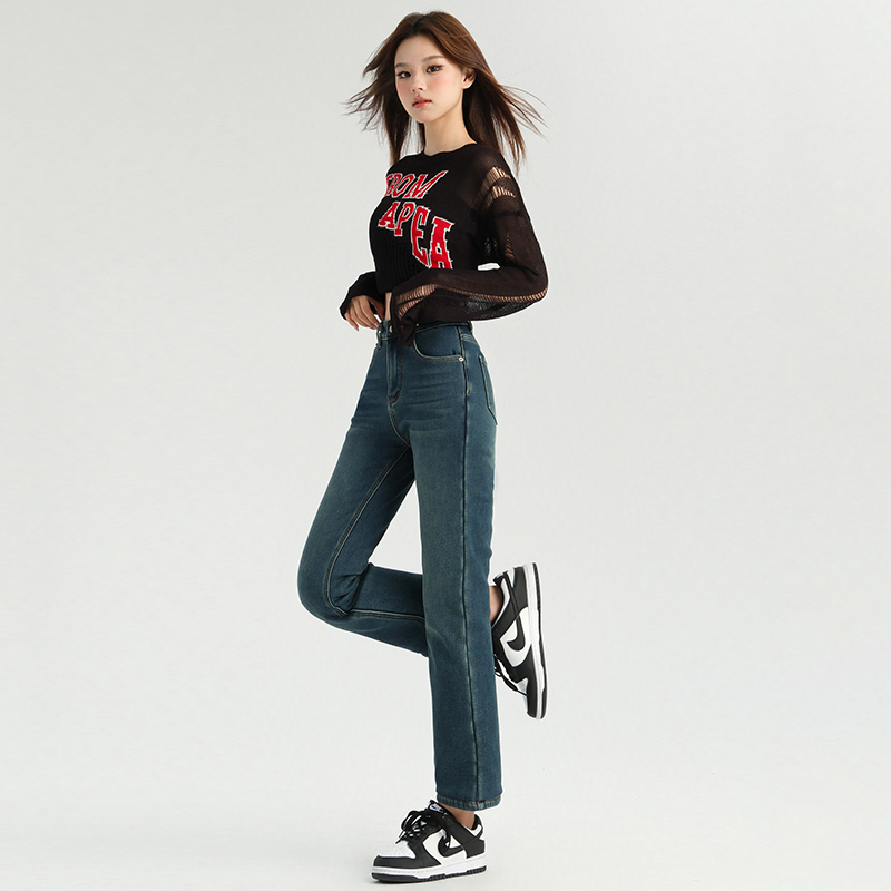 『娜娜粉丝专享』加厚绒高腰显瘦腿直烟管裤女秋牛仔法棍裤 3621