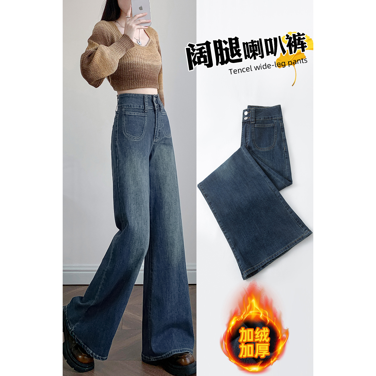 2025秋冬加绒直筒高腰显瘦喇叭裤高个子加长阔腿牛仔裤女大裤脚