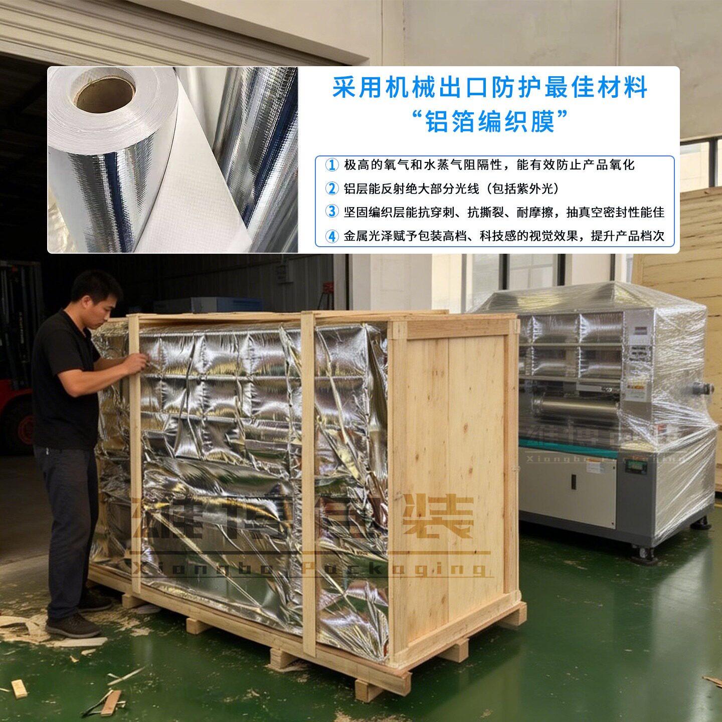 工业铝箔编织真空袋大型机器设备木箱出口防海雾盐蚀四方立体包装