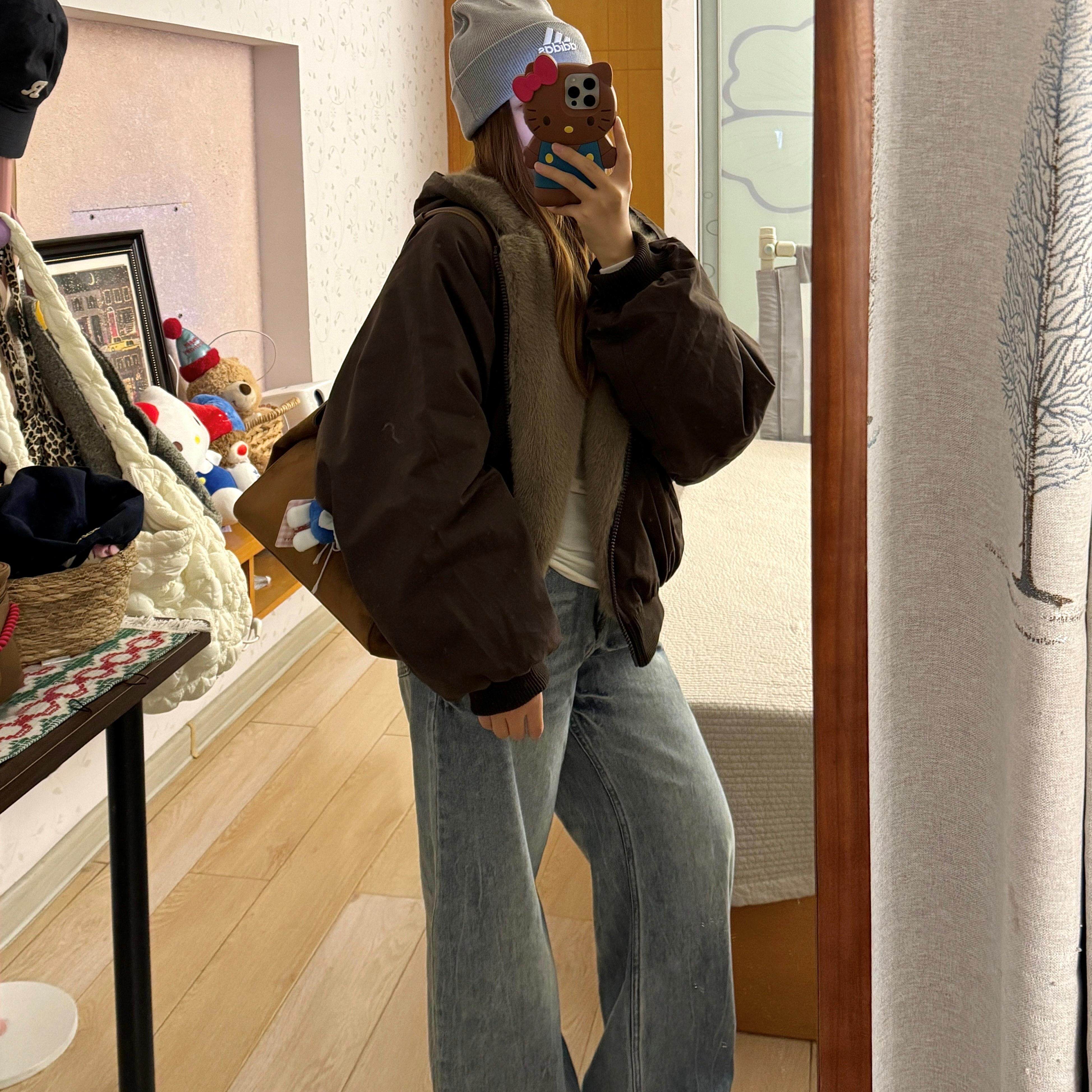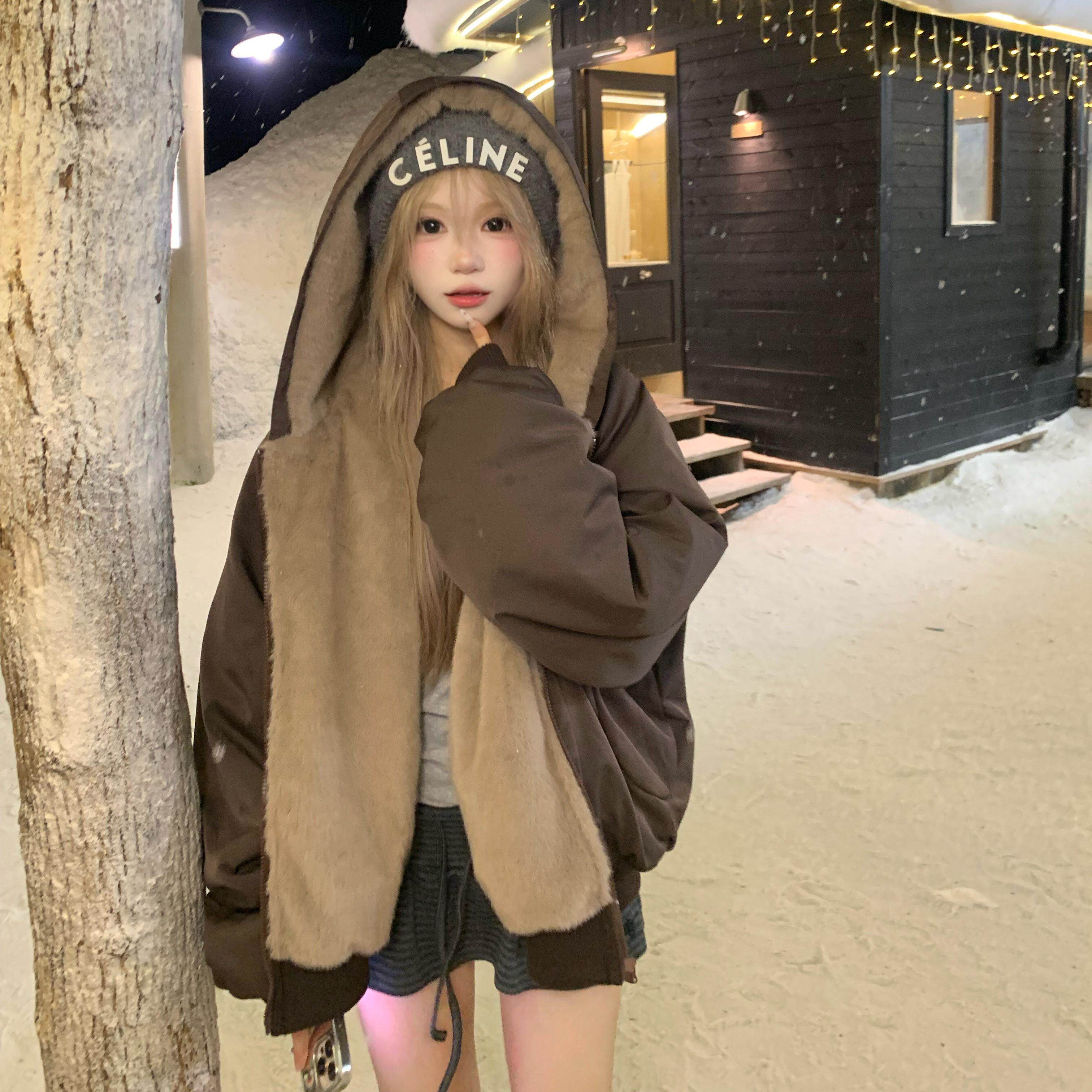 座山雕棉服女款冬季2025新款棉袄美式慵懒感双面穿棉衣冬装厚外套