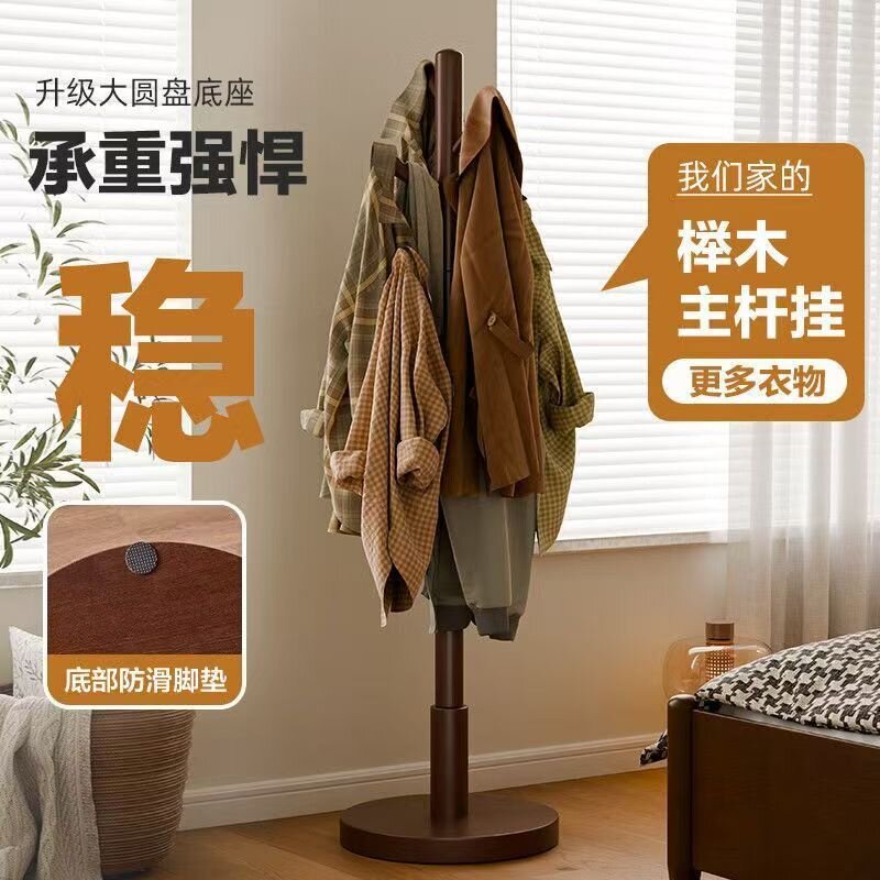 实木衣帽架家用落地卧室挂衣架简易置衣架不占空间室内入户挂包架