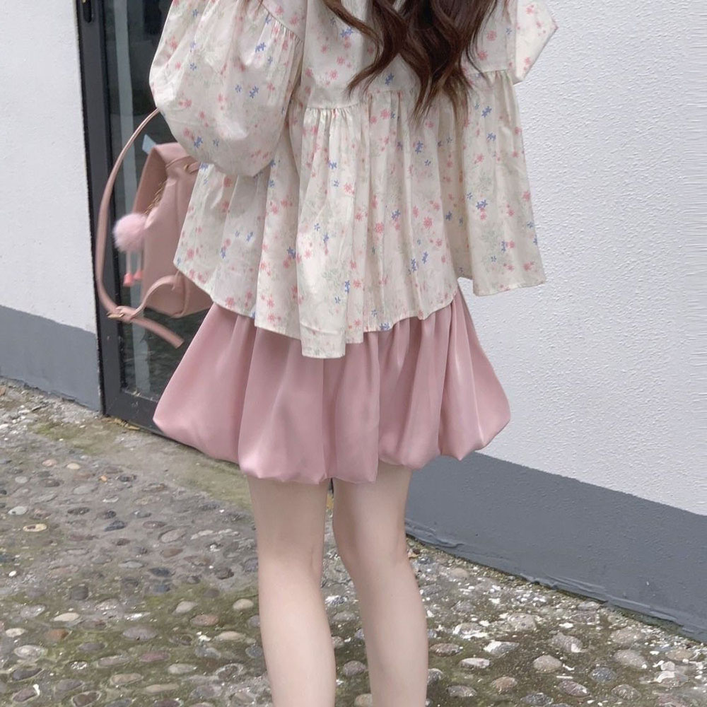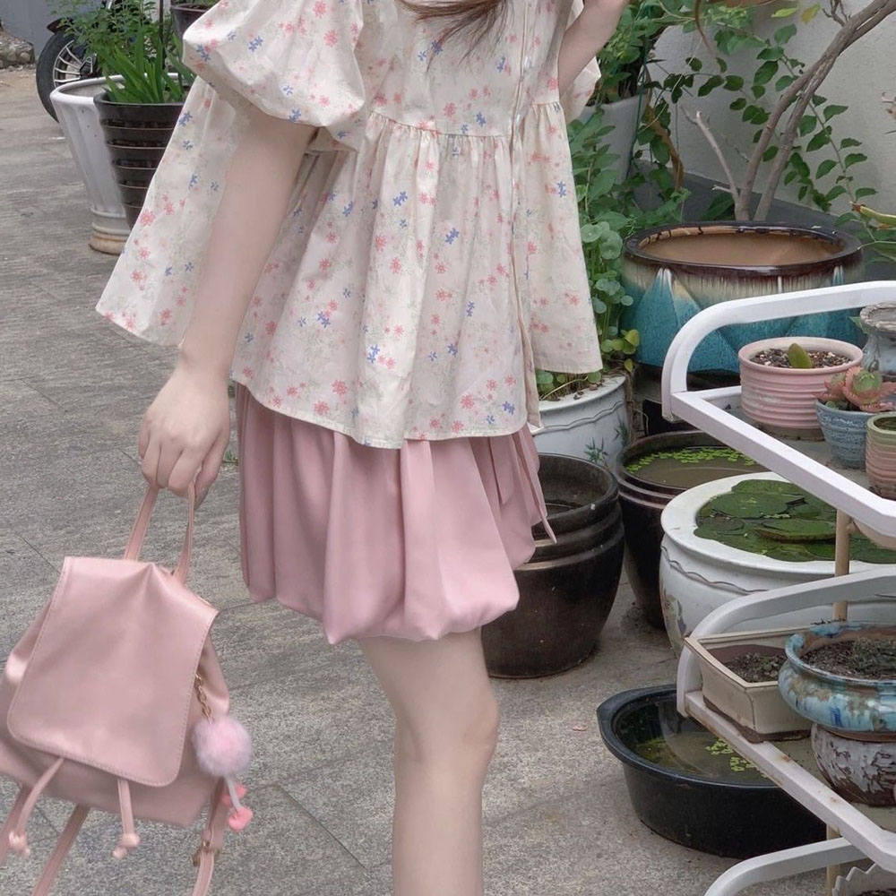 夏季法式甜美碎花温柔风雪纺衬衫女森系娃娃衫小个子t恤小衫上衣