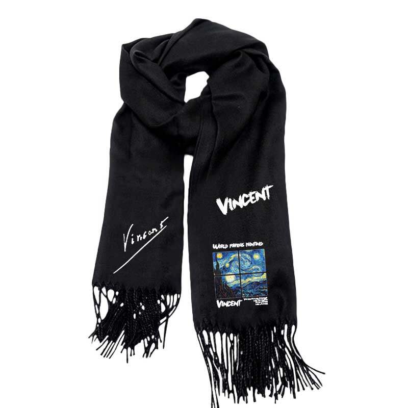 梵高世界名画联名星空向日葵麦田仿羊绒围巾男女户外保暖围脖披肩