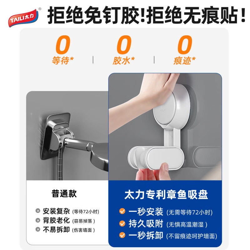 太力万向花洒支架免打孔淋浴淋雨喷头置物架可移动吸盘挂钩固