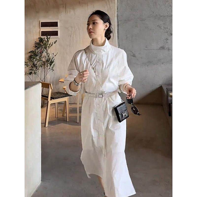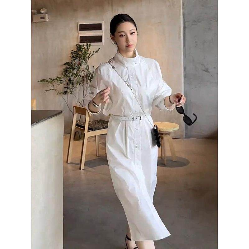 白色立领衬衫连衣裙独特漂亮春装韩系chic别致通勤穿搭高级感裙子