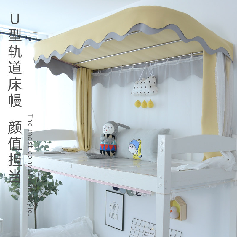 1vpr蚊帐一体上铺物理遮光床帘学生宿舍u型轨道带支架下铺帘子