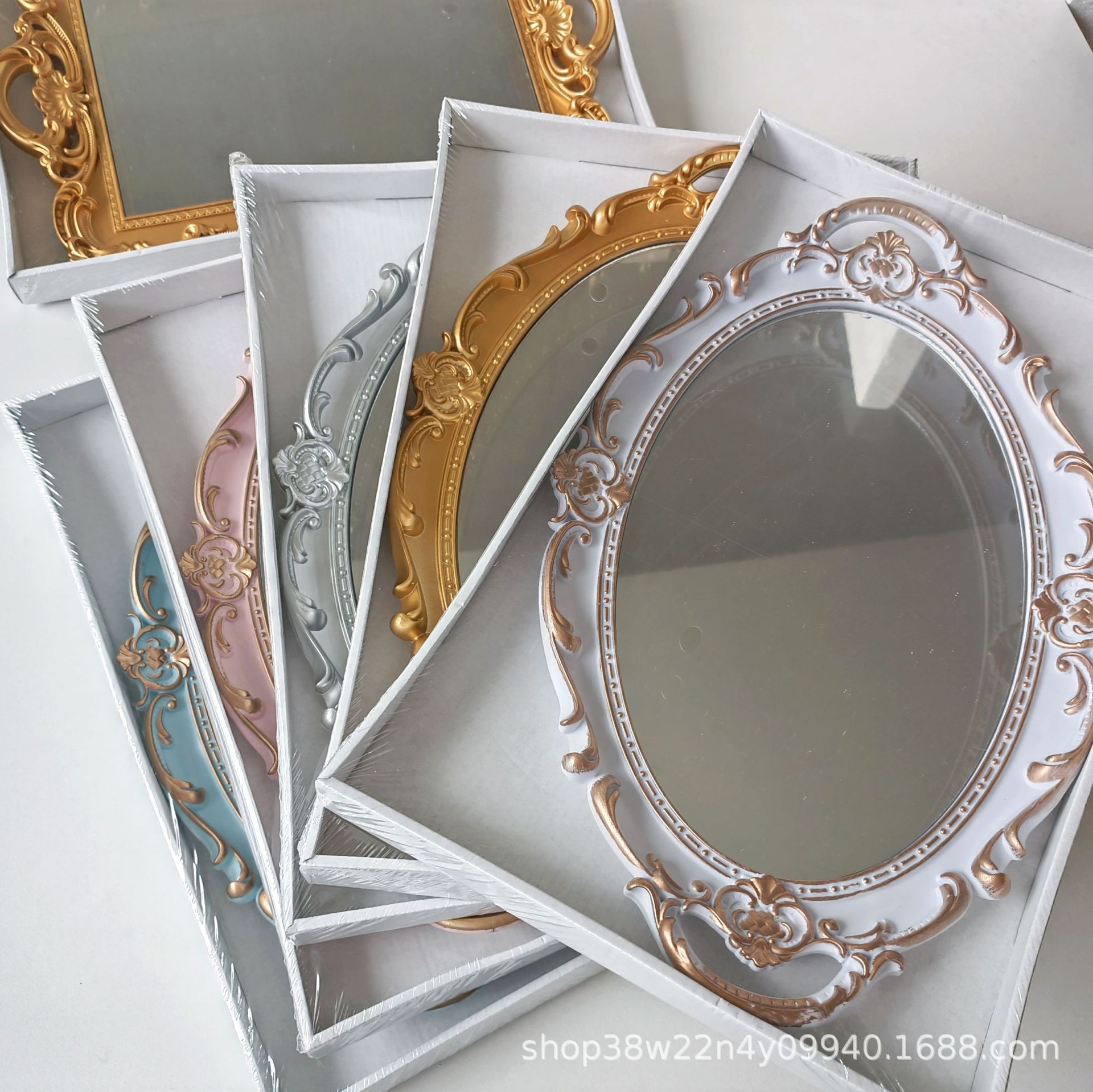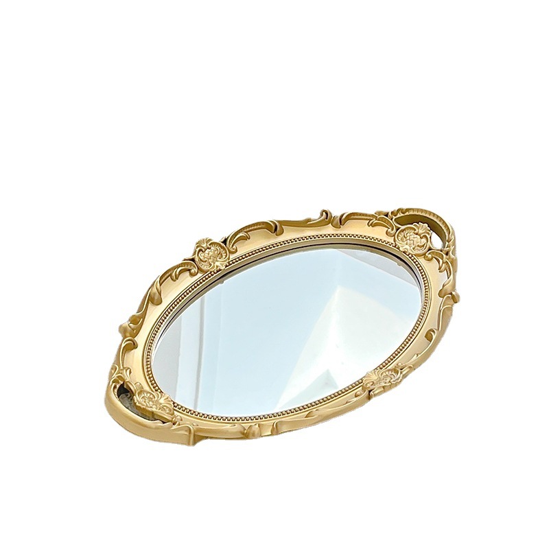 法式复古玻璃镜面托盘ins风客厅装饰摆件香薰首饰展示镜子收纳盘
