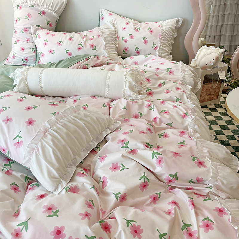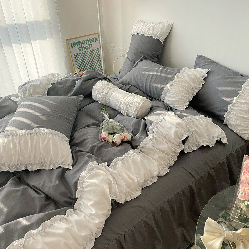 2022年被套法式ins风花边褶皱新款少女心四件套批发床上用品套件