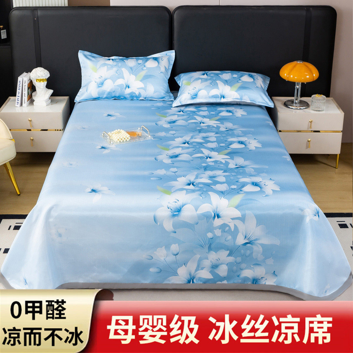 2024新款冰丝凉席三件套夏季床单可机洗折叠家用1.5米1.8空调席子