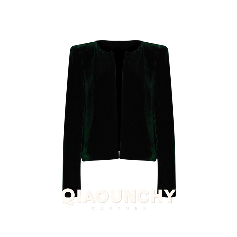 帝王绿 QIAOUNCHY俏云曦 | 25秋冬真丝丝绒直法式角肩开衫短外套