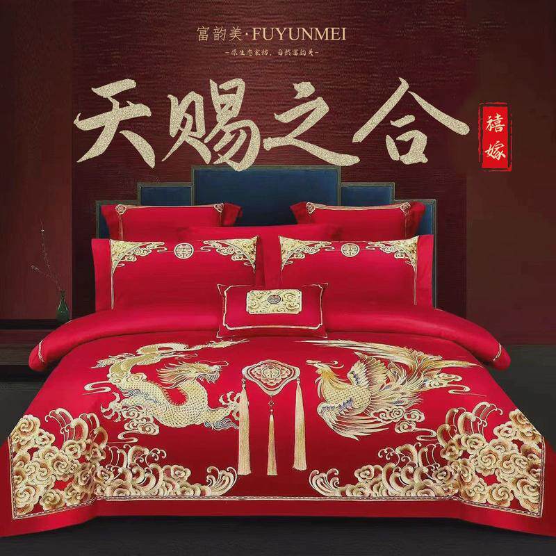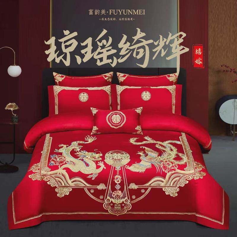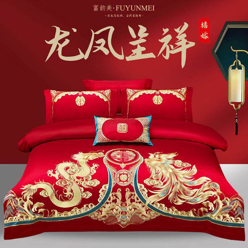 新中式100多件套婚庆四件套支大红婚庆床上用品长绒棉结婚四件套