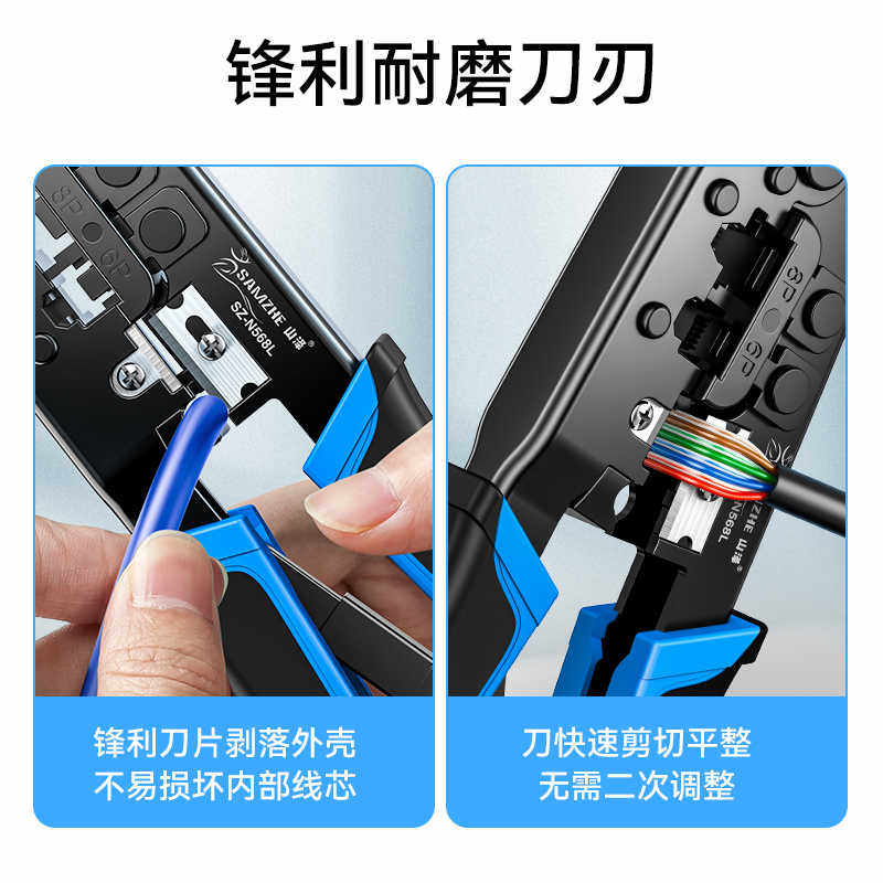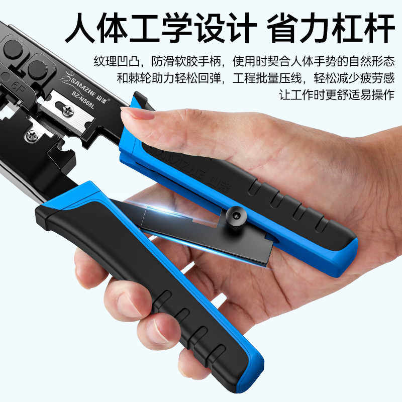 山泽网线钳子专业级六类五类网络水晶头压线剥线钳多功能家用工具