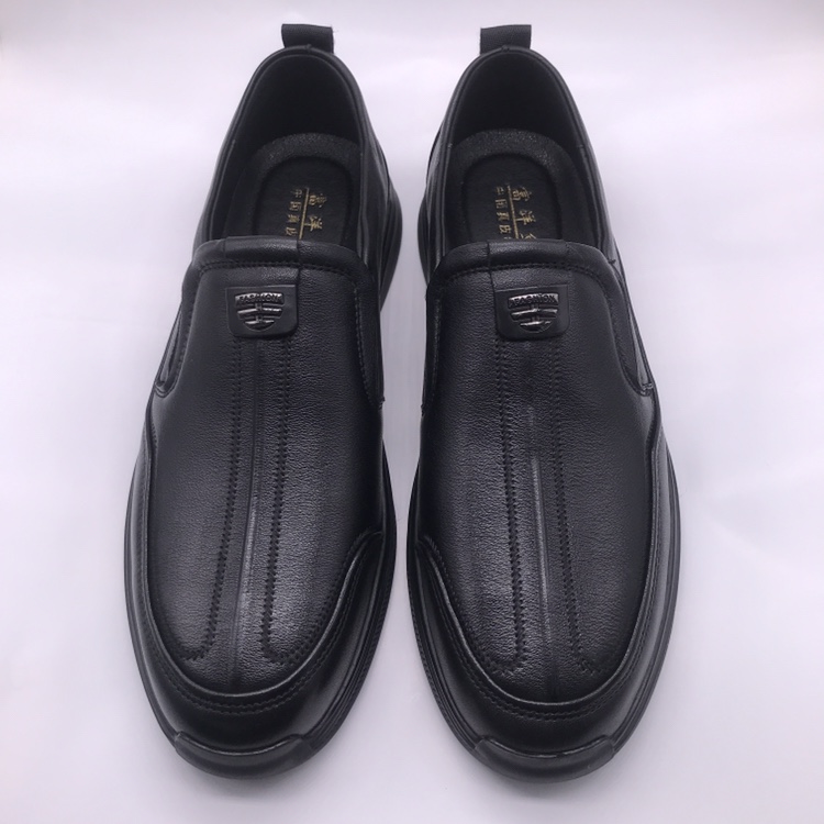 富洋鱼品牌男鞋休闲鞋头层牛皮透气舒适排汗橡胶大底防滑耐磨黑色