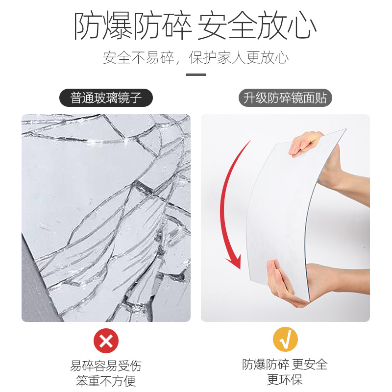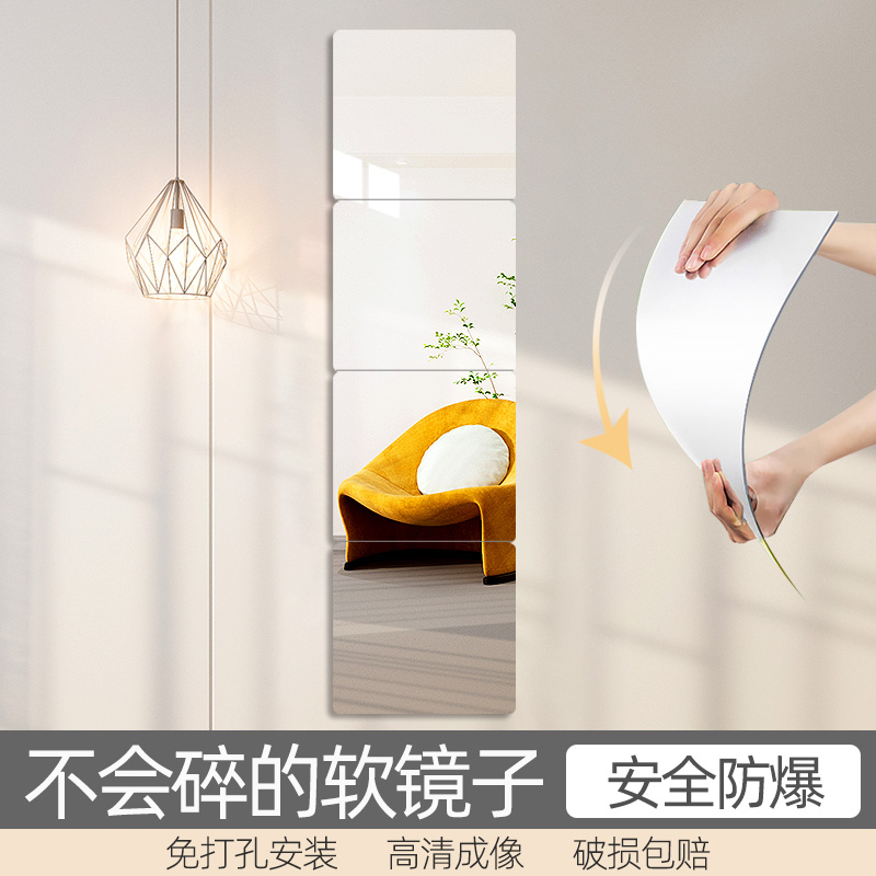 软镜子贴墙自粘压克力高清学生宿舍全身镜M面贴纸出租屋门後拼接