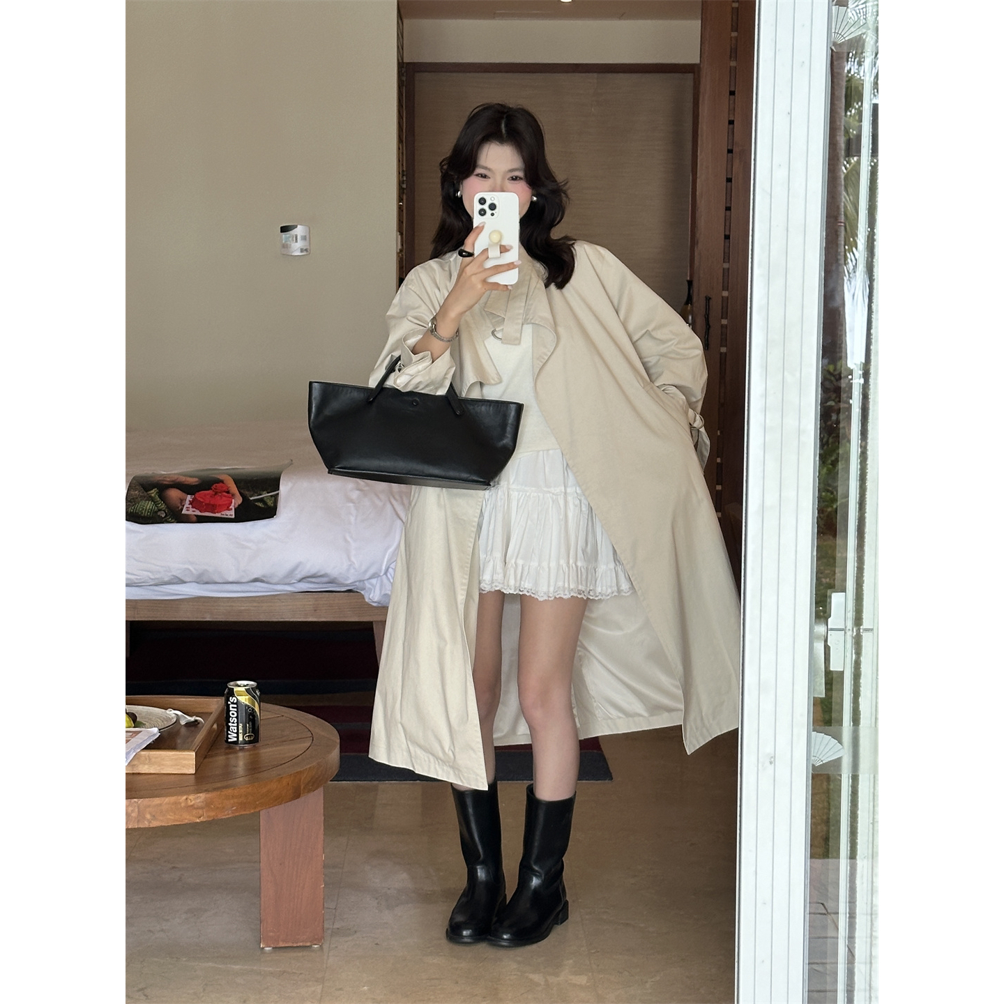 【大开家】淡人爱穿的~【柠檬绿茶】休闲通勤长款百搭薄风衣8223