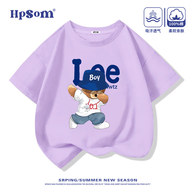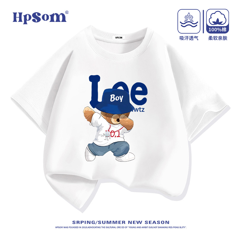 儿童短袖夏季纯棉2025新款潮酷小熊T恤男女中大童装半袖透气衣服