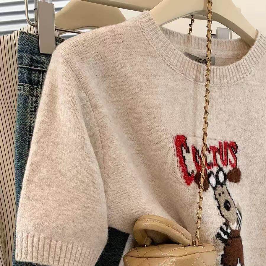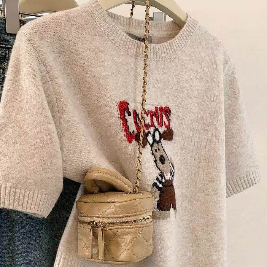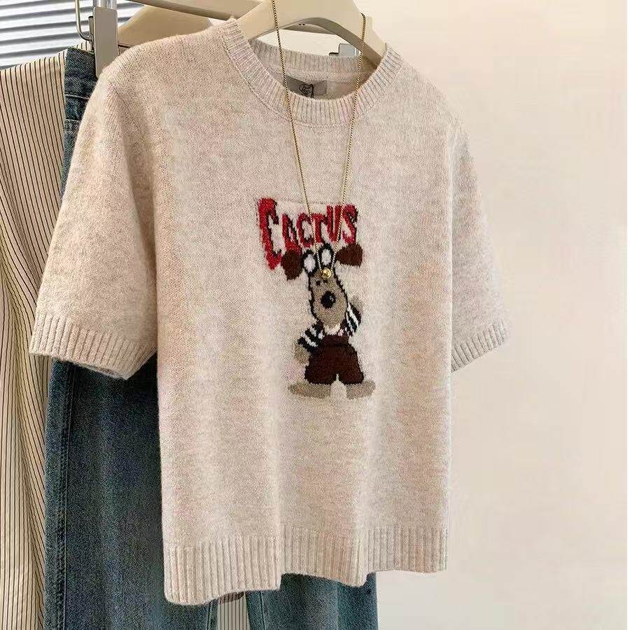 特大码2-300斤套头短袖针织衫毛衣女春夏胖mm宽松圆领t恤内搭上衣