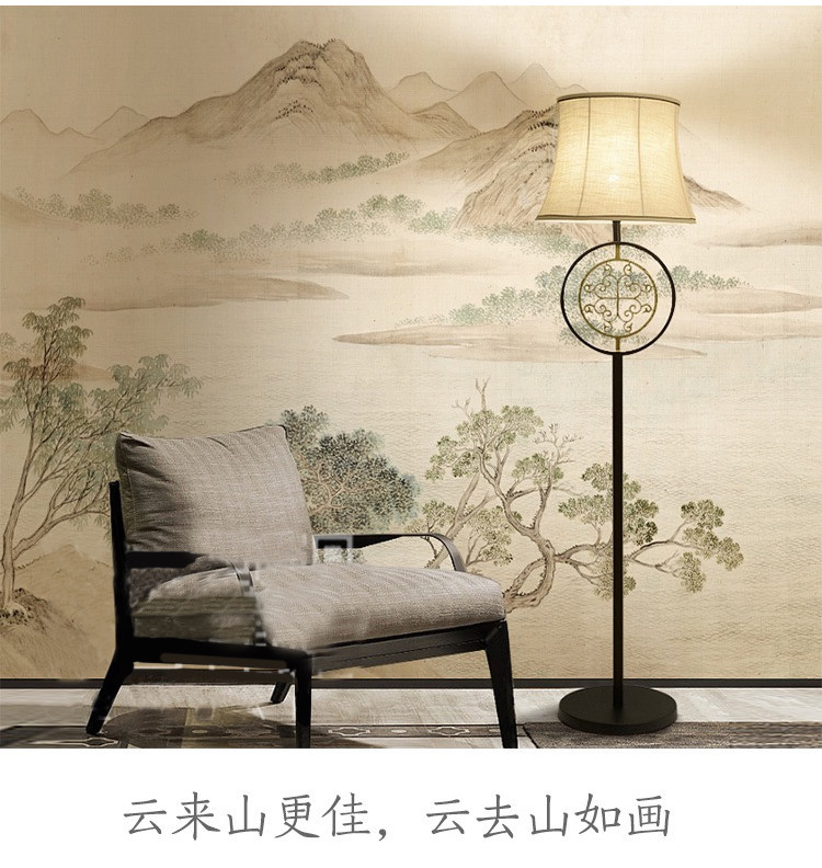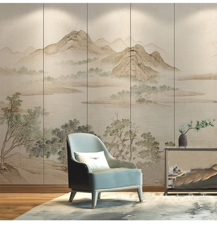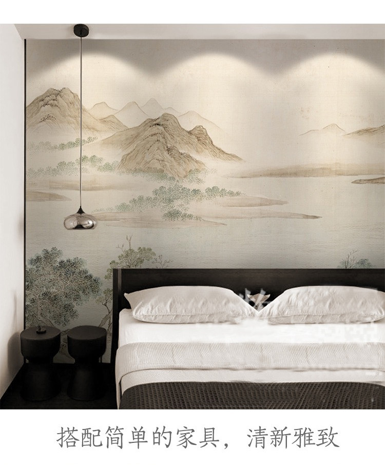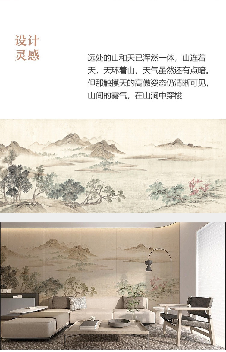 2023年新款壁布电视背景墙纸雅致新中式壁纸山水装饰墙布鎏金壁画