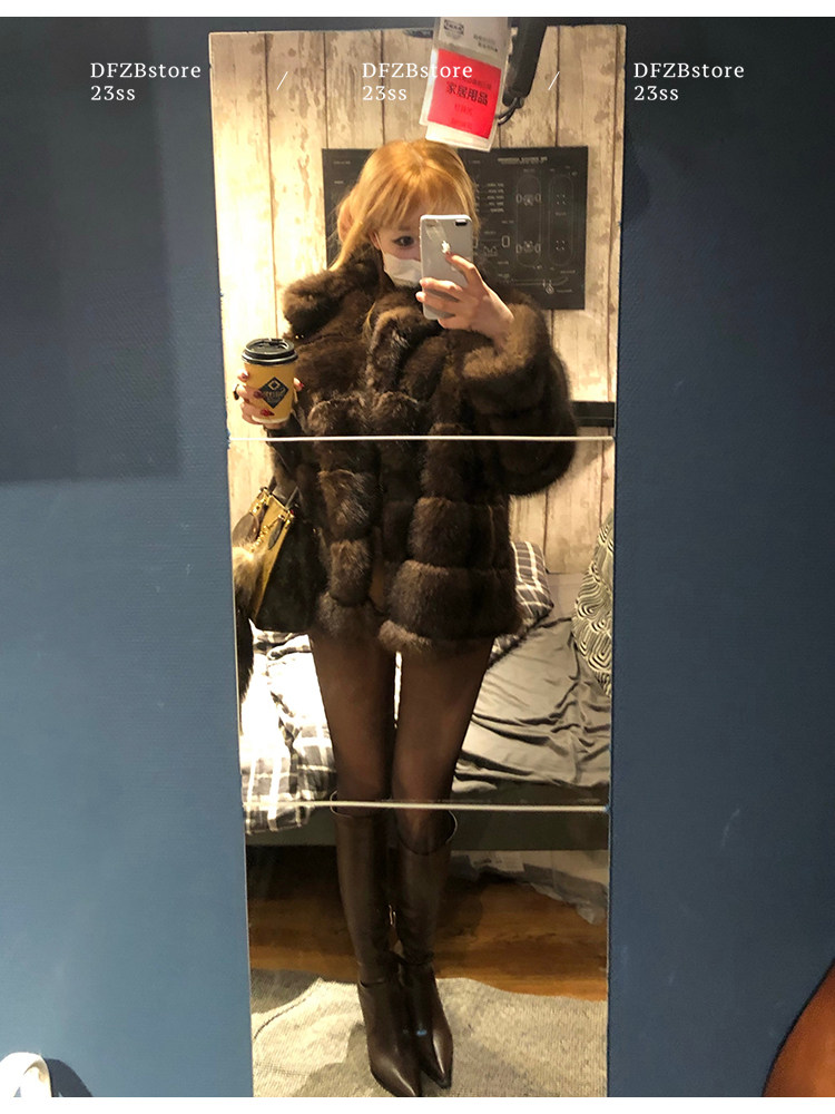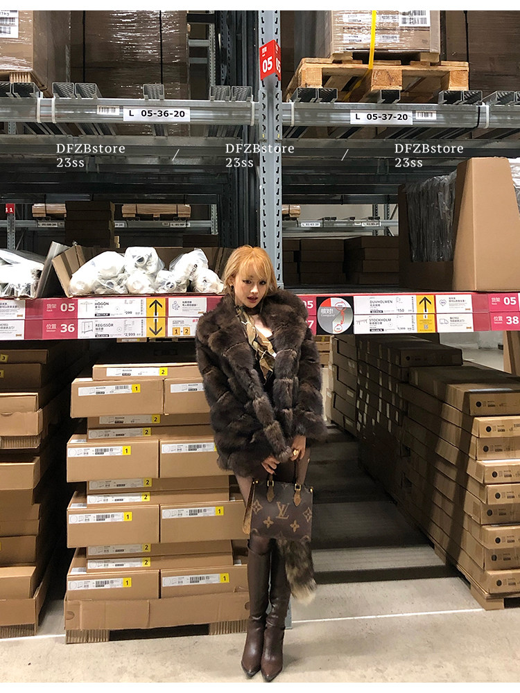 DFZBstore 贵气狐狸人妻 U形大圆领打底&翘臀高腰短裤&环保皮草