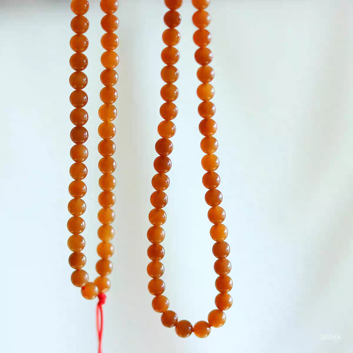 黄金糖新疆和田玉108颗佛珠项链手串糖玉女且末料红糖多圈手串
