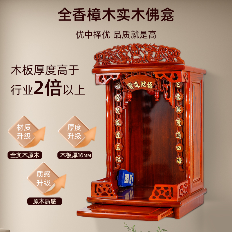 香樟木实木佛龛供桌佛台家用观音佛像橱柜新中式挂柜财神爷摆