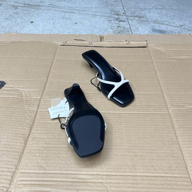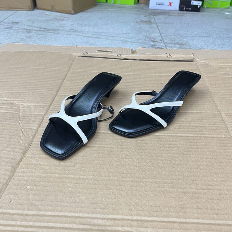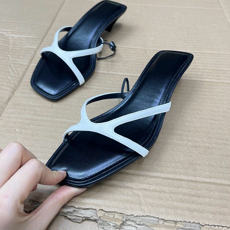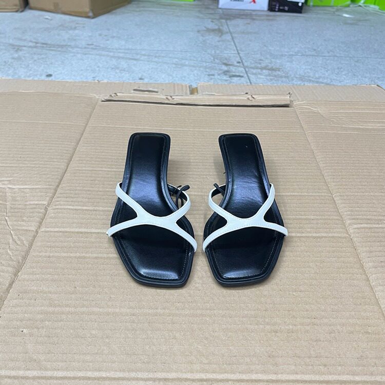 外贸原单方头真皮低跟凉鞋简约时尚新款露趾一字舒适日常外穿拖鞋