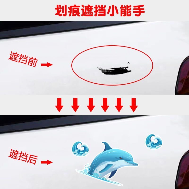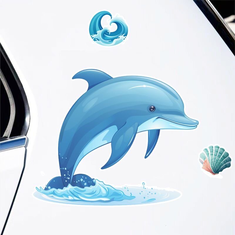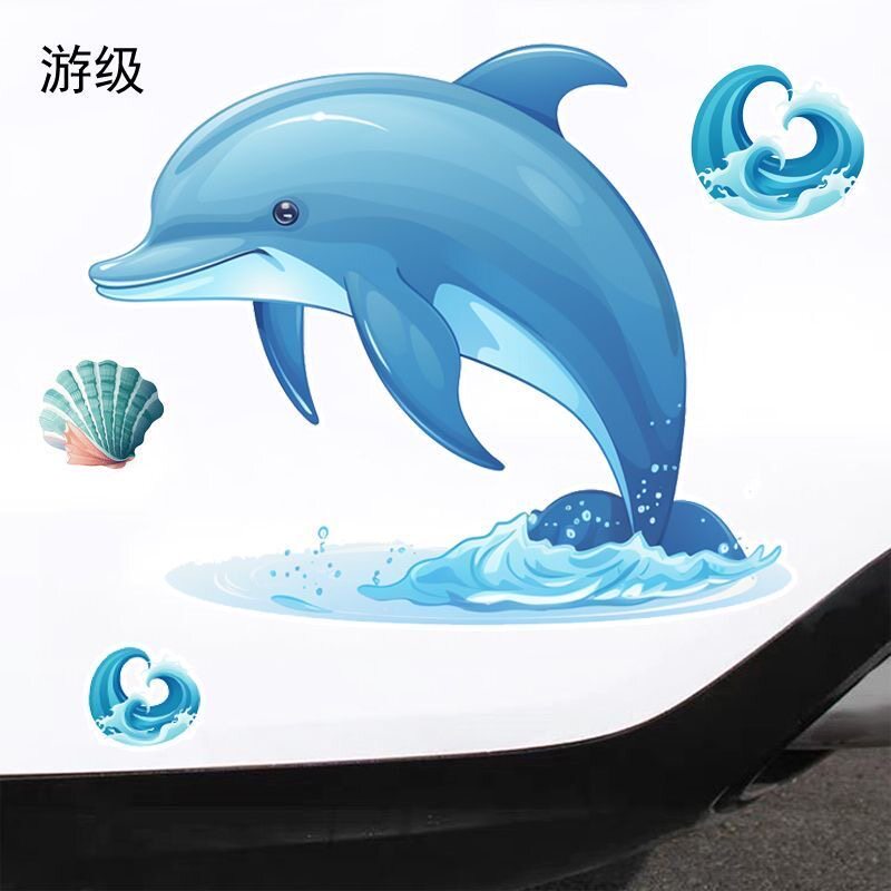 可爱海豚跳水车贴划痕遮挡车门贴画墙上贴饰贴纸瓷砖冰箱装饰画