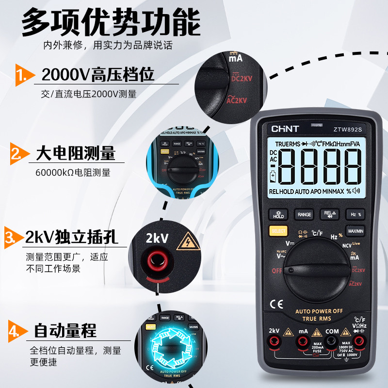 光伏万用表数字高精度2000V高压矿用万能表电工专用智能防烧