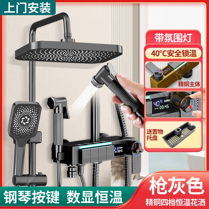 首页> 家居> 正品枪灰色恒温淋浴花洒套装数显淋雨浴全L铜沐浴家用浴室增压花