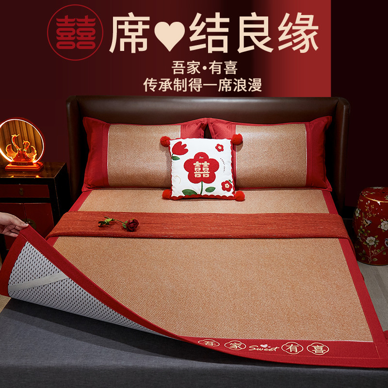 家师傅吾席有喜凉席三件套结婚陪嫁席子婚庆藤席天然纯藤婚床新款