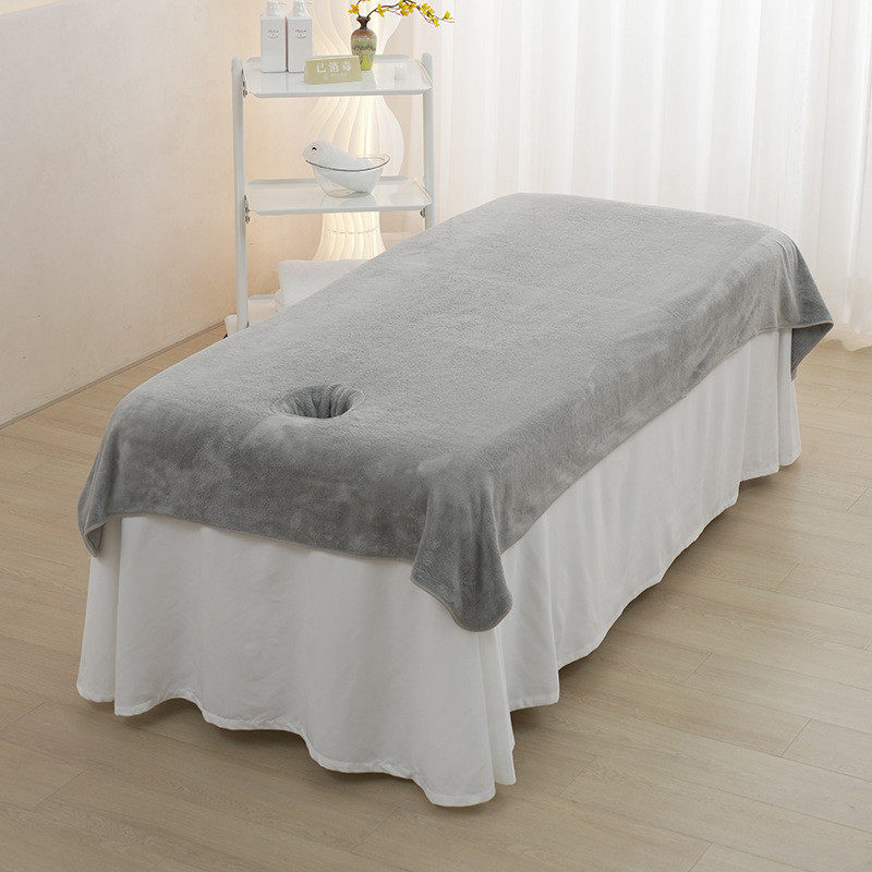 美容床单单件用吸水绒高档按摩推拿床理疗铺床巾开洞美容院盖毯