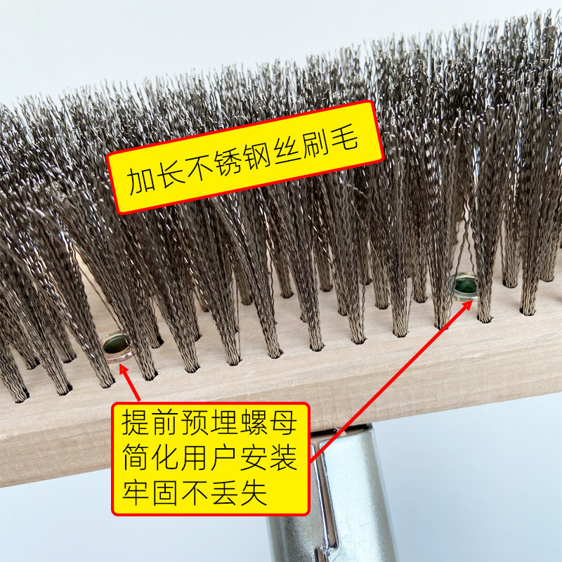 米瓦奇钢丝地板刷长柄硬毛钢丝刷子去青苔污垢路面院子工厂洗地刷